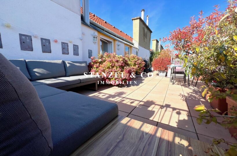 SONNIGES DACHGESCHOSSAPARTMENT IN SCHÖNEM STILHAUS ( BJ 1993 ) 109m² Maisonette im Dachgeschoss, mit traumhafter 49m² Süd-Ostterrasse in schönem Stilhaus aus 1898 ( Vorzimmer,…