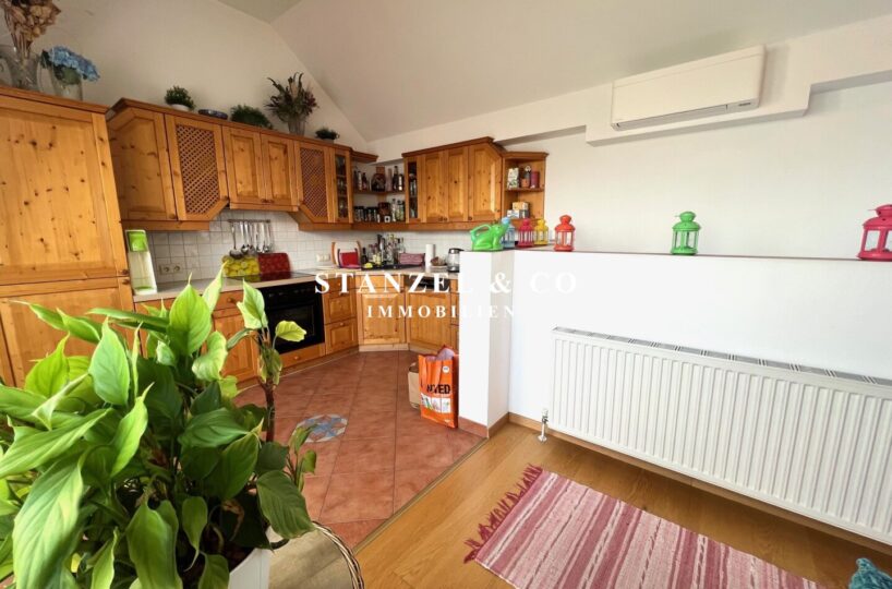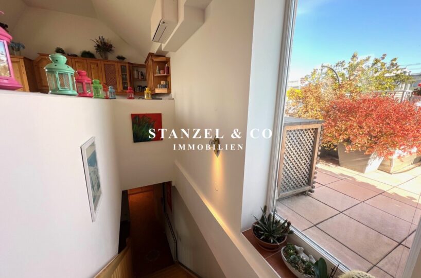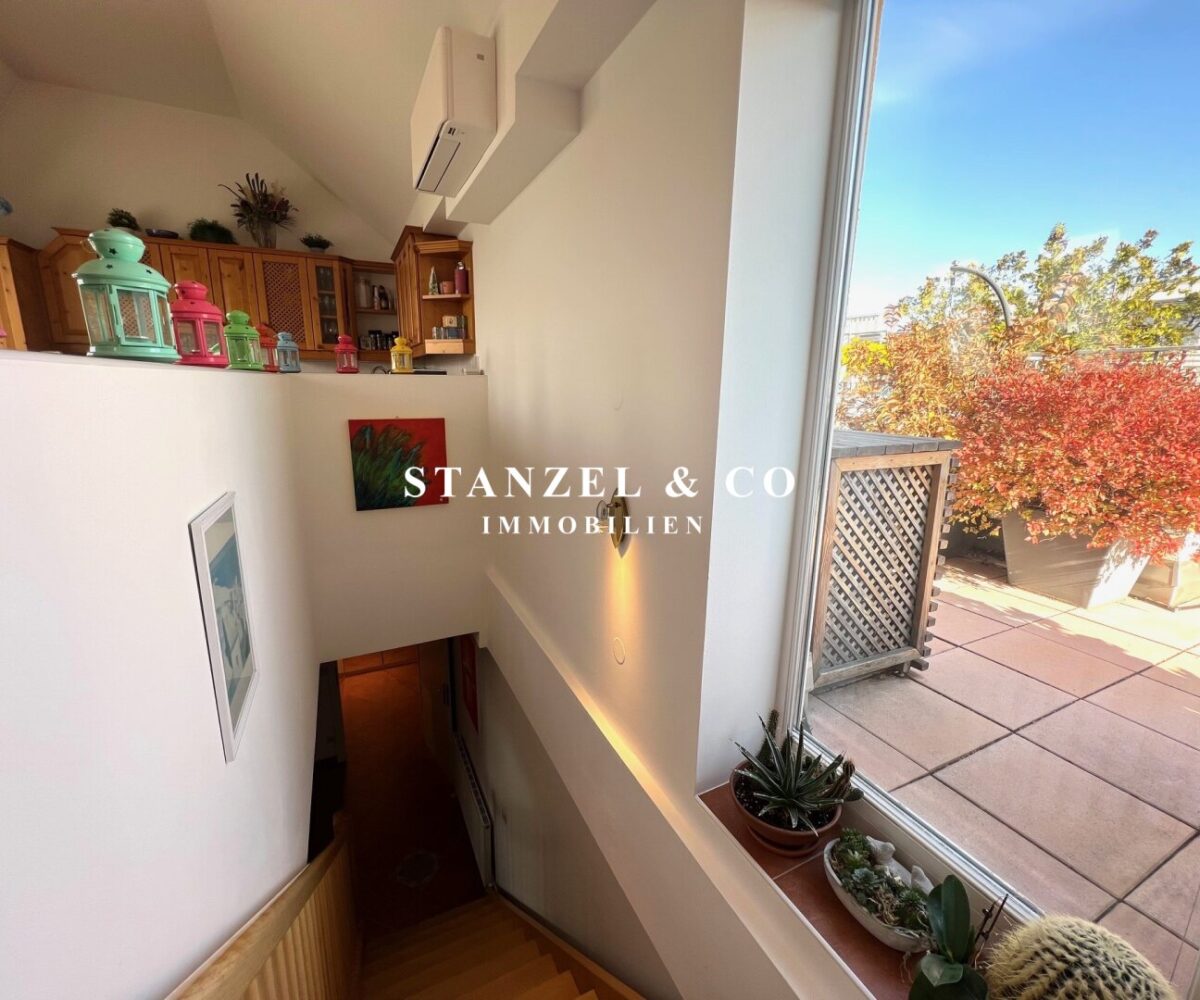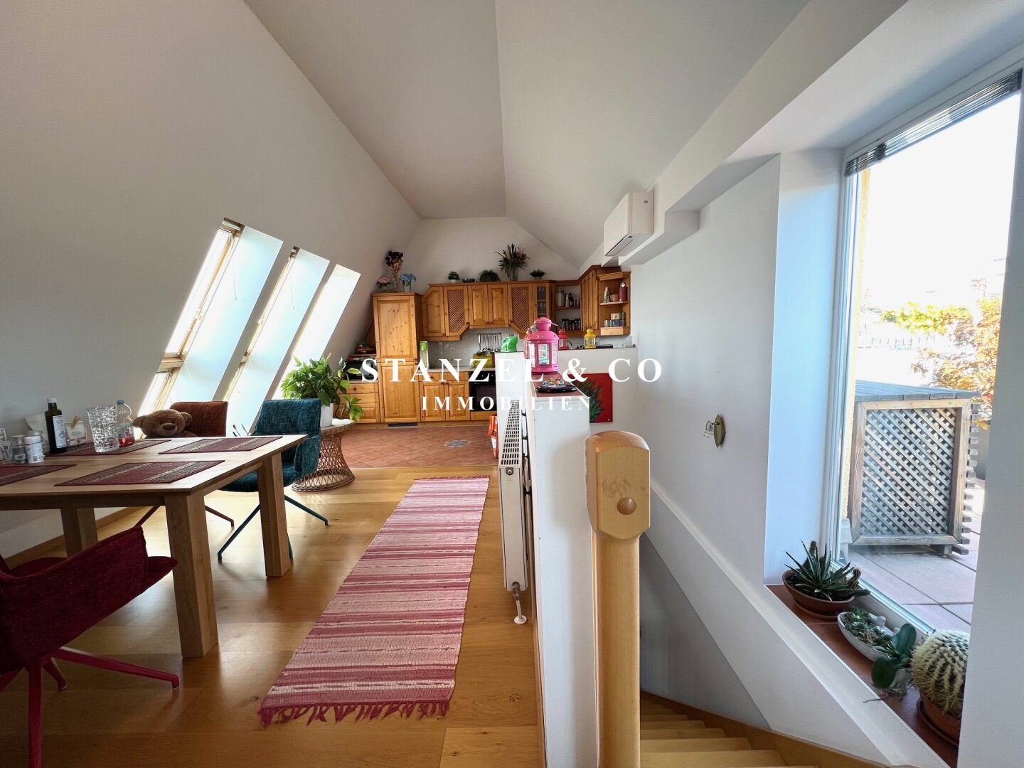 ( Vorzimmer, Südostterrasse, großes loftartiges Wohnzimmer mit offener Küche, 2 Schlafzimmer, großes Badezimmer, Abstellraum, Staubereich unter der Treppe, WC mit Gästewaschbecken )