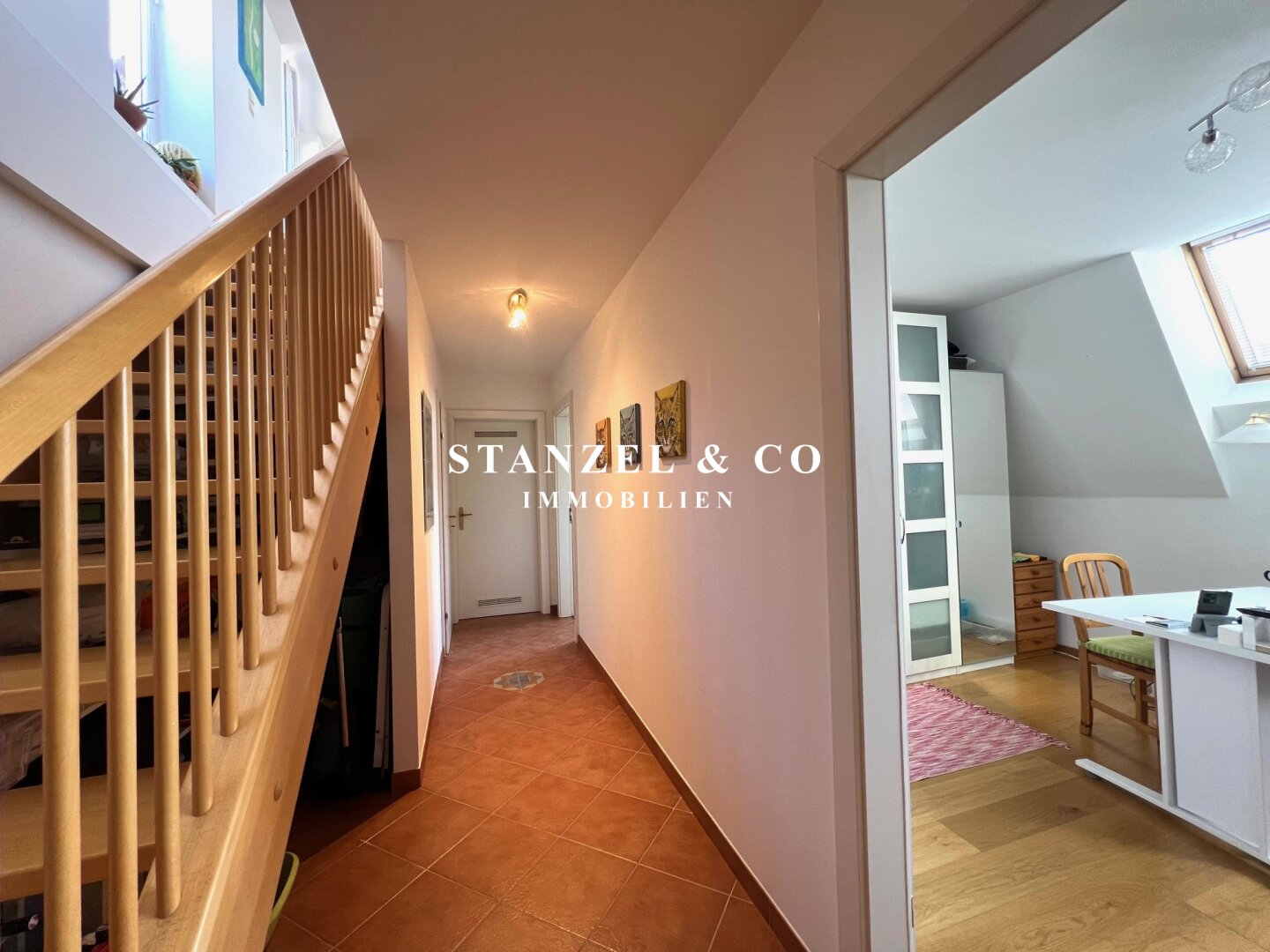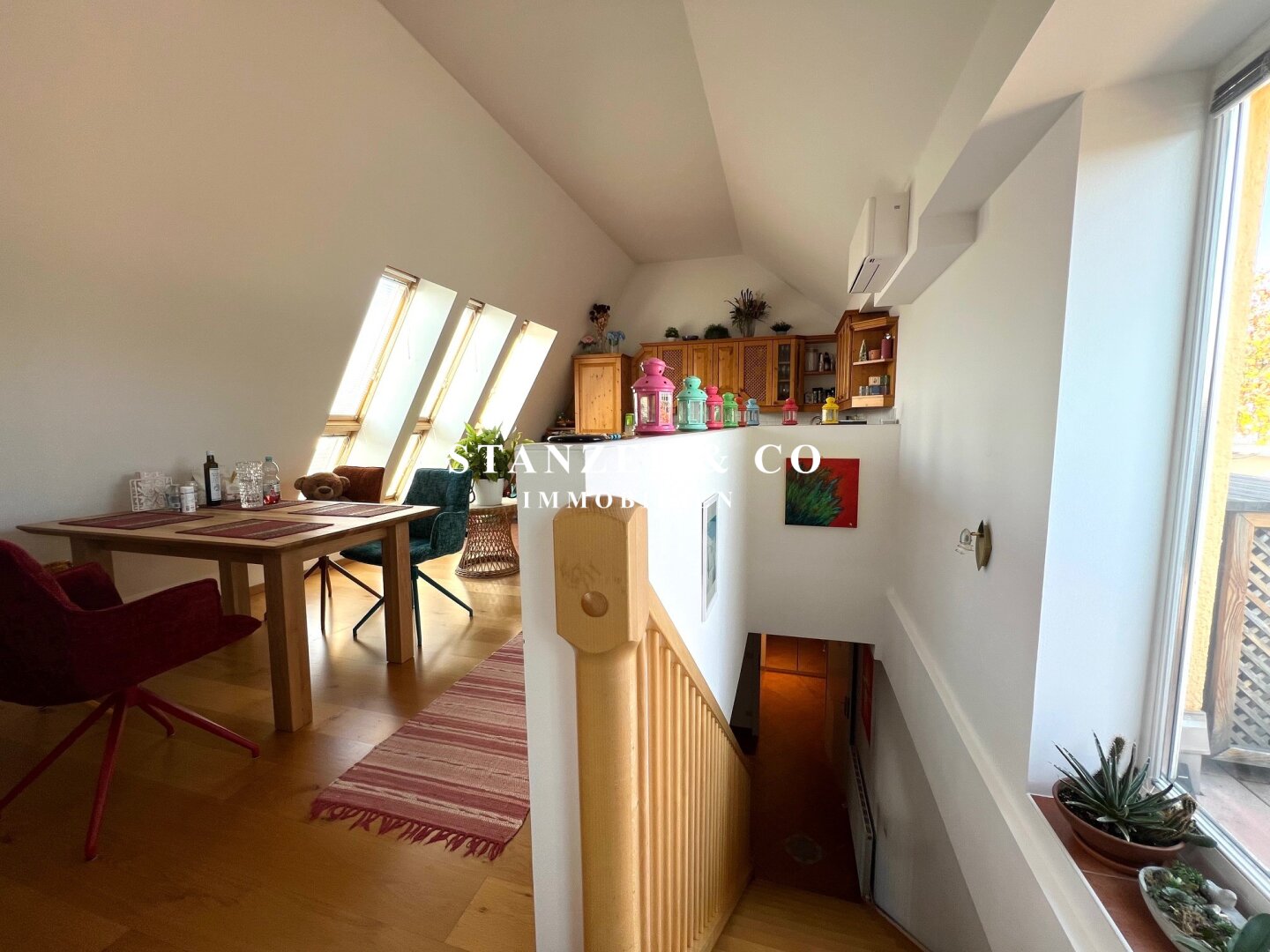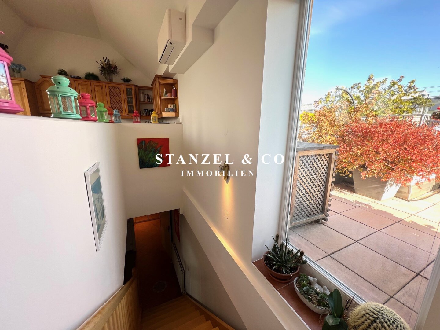 ( Vorzimmer, Südostterrasse, großes loftartiges Wohnzimmer mit offener Küche, 2 Schlafzimmer, großes Badezimmer, Abstellraum, Staubereich unter der Treppe, WC mit Gästewaschbecken )