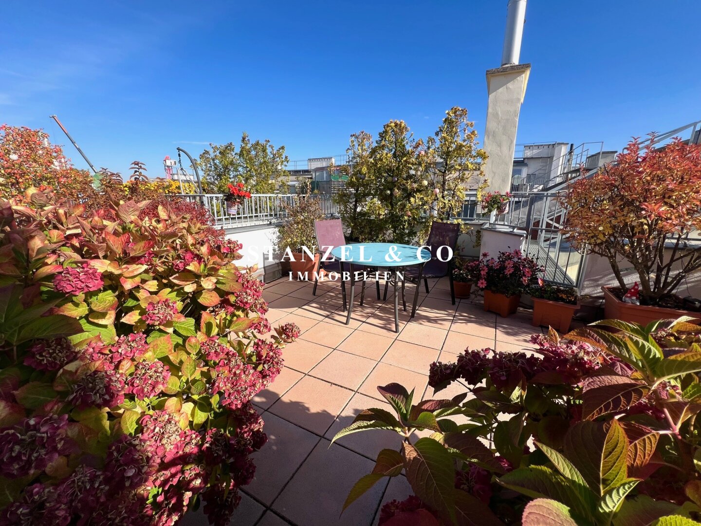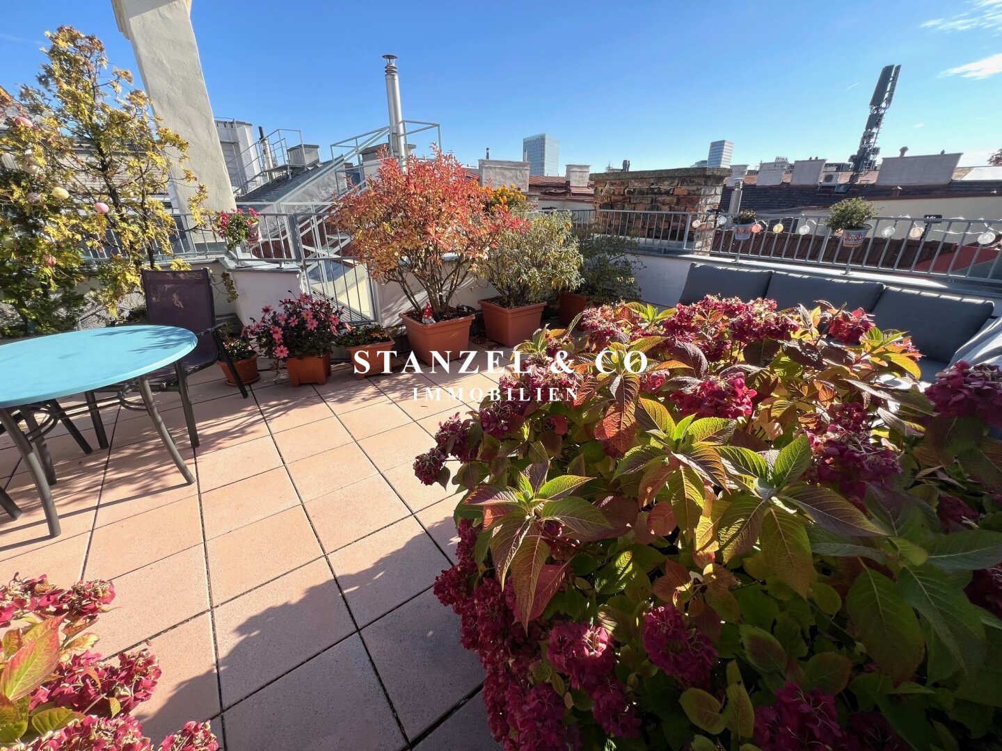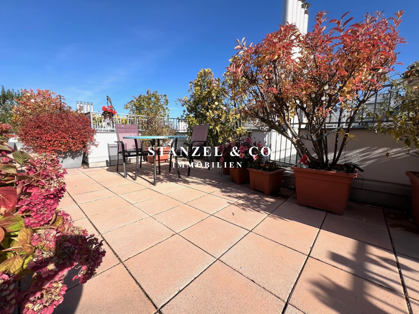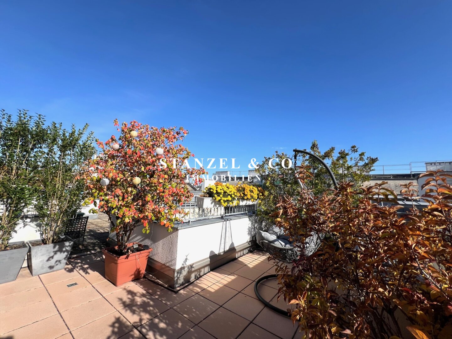 • Terrasse mit Stromanschluss, Beleuchtung und Wasseranschluss sowie automatischer Bewässerung der Pflanzen