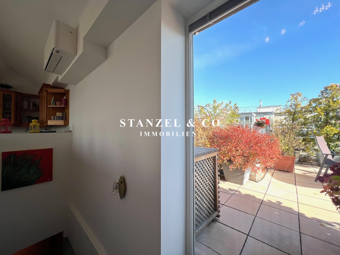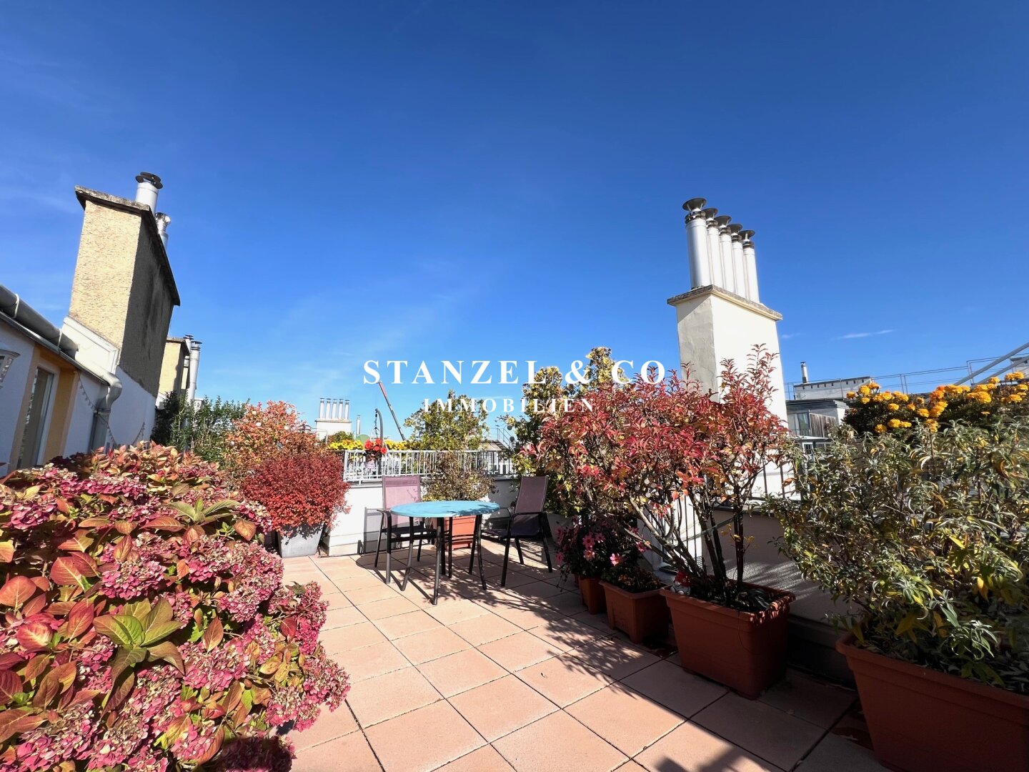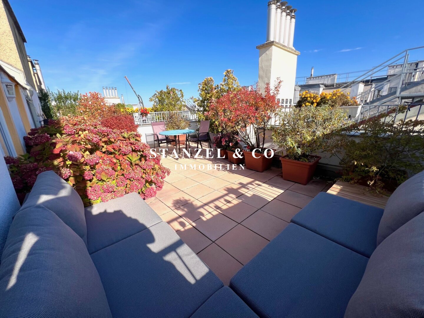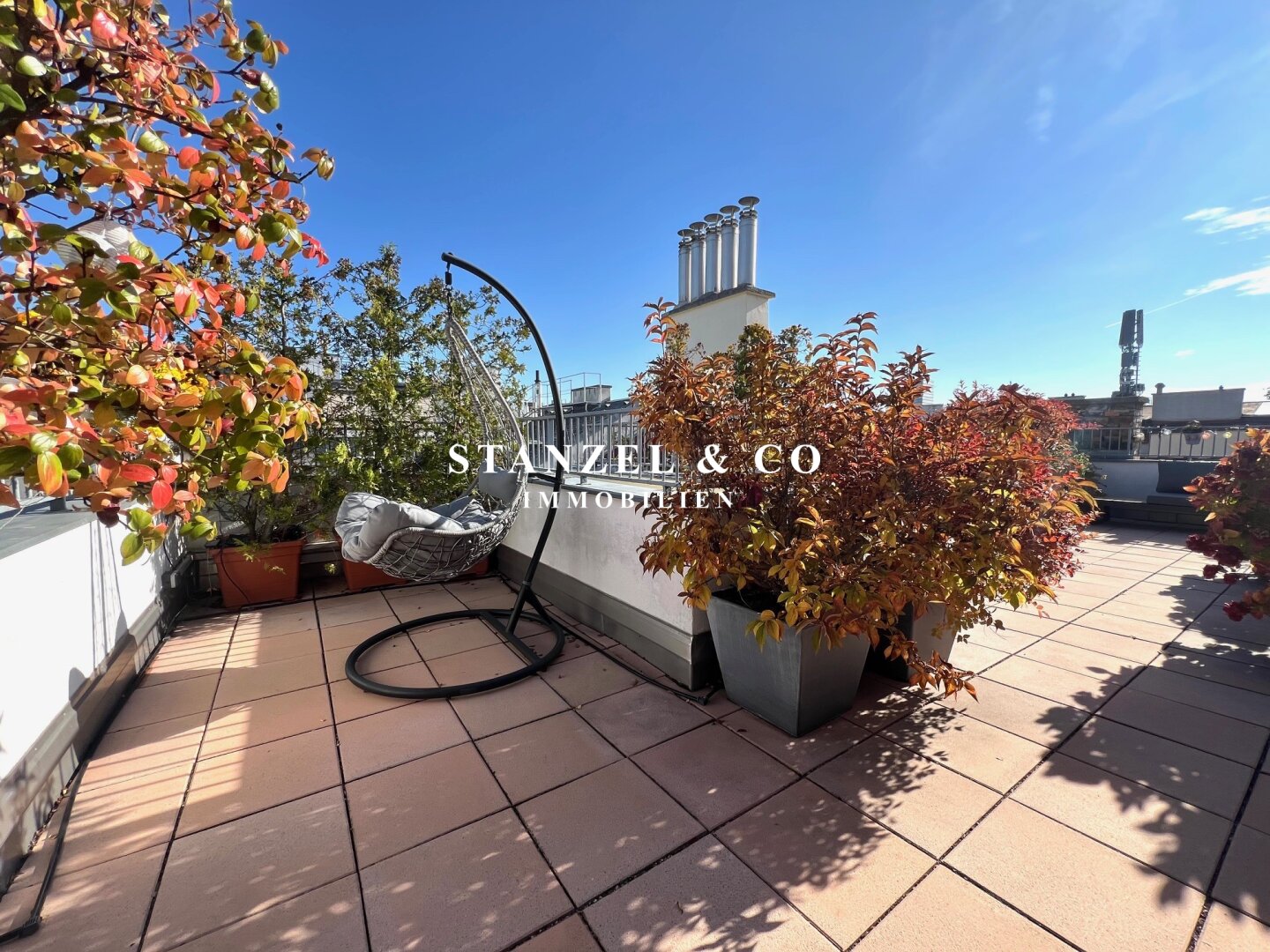 • Terrasse mit Stromanschluss, Beleuchtung und Wasseranschluss sowie automatischer Bewässerung der Pflanzen