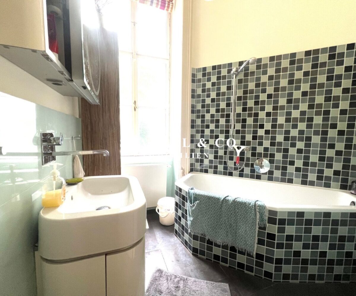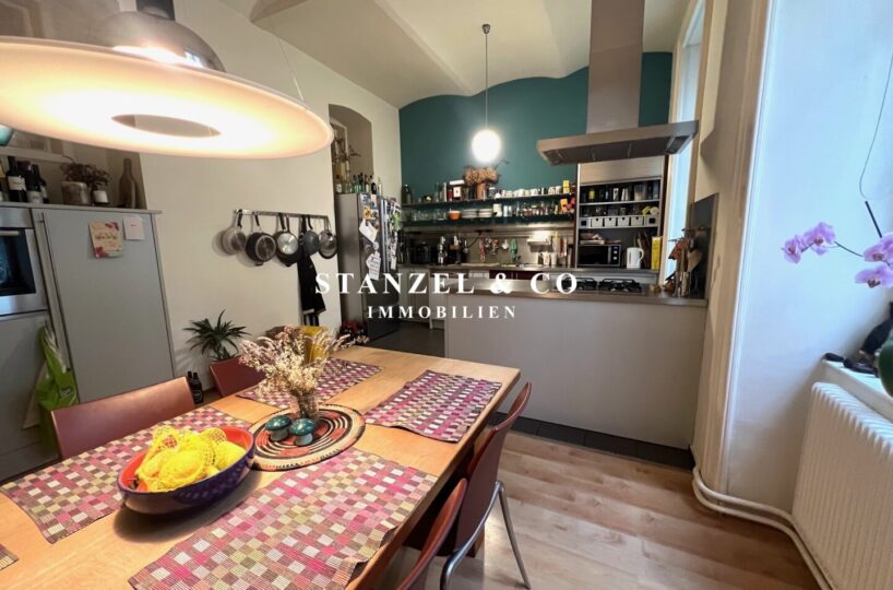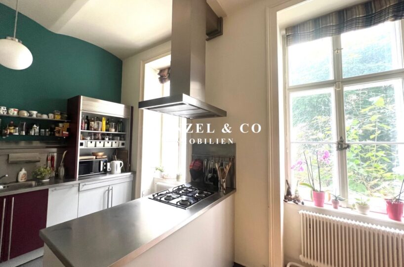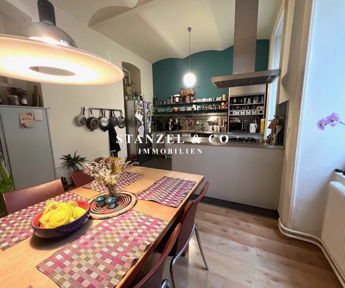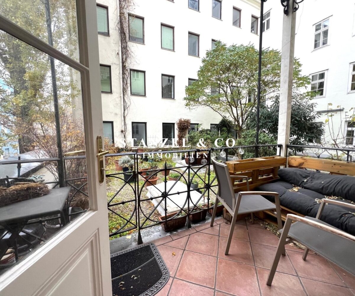 Von der 16m² großzügigen Diele gelangt man in das 29m² große, südwestseitige Wohnzimmer, das mit einem 21m² großen Zimmer verbunden ist. Die 20m² große, gartenseitige Wohnküche ist mit einer Bulthaup-Küche ( Miele-Geräte) und mit einem Tonnengewölbe ausgestattet. Das 25m² große Schlafzimmer orientiert sich nach Südwesten – das zweite 25m² große, innenhofseitige Schlafzimmer verfügt über einen anschließenden ca. 5m² großen gartenseitigen Balkon und hat einen direkten Zugang in den begrünten Innenhof. Das Badezimmer mit Fenster ist 5m² groß und mit einer Dusche, einem Doppelwaschtisch und einem großzügigen Spiegel versehen.