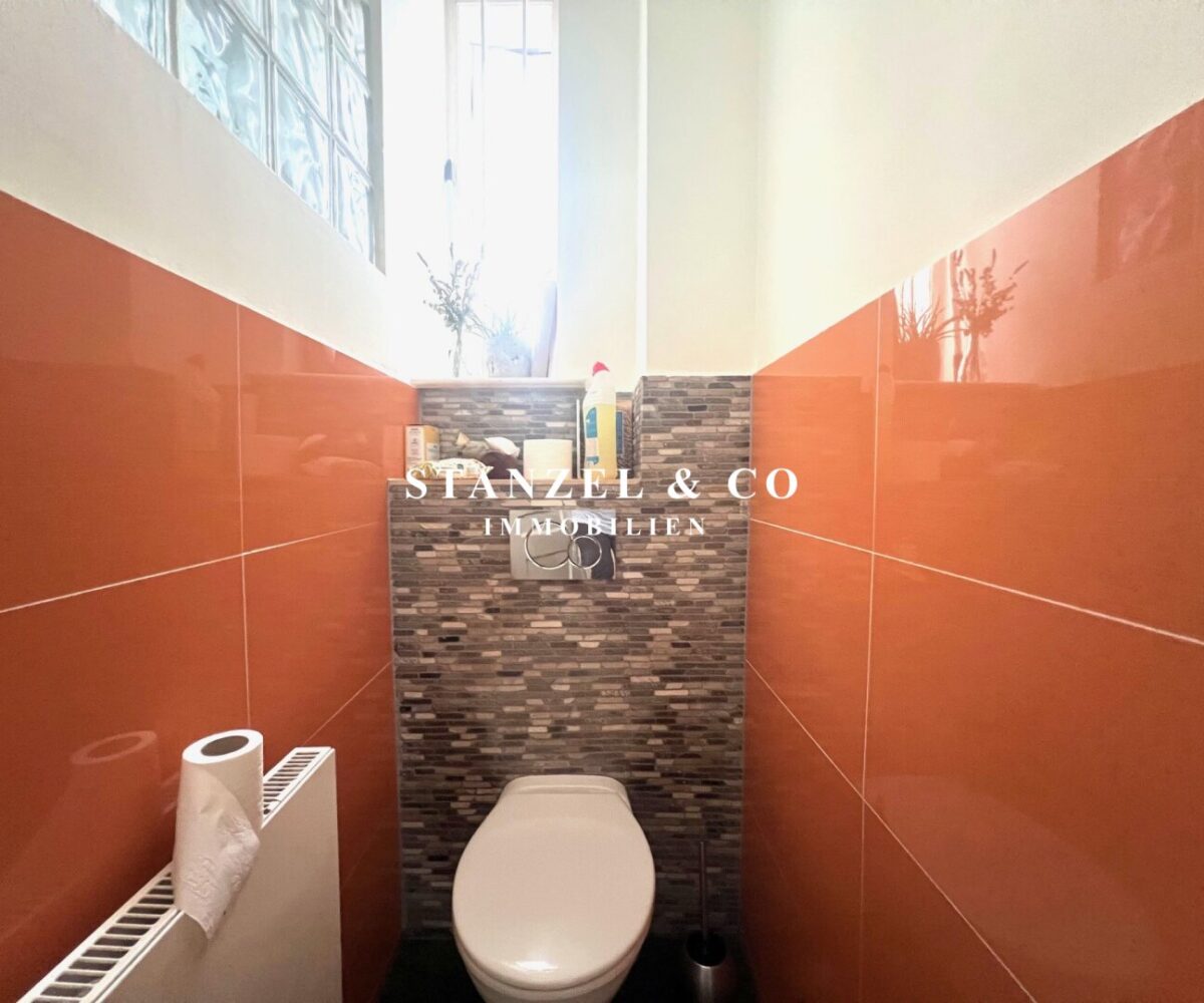 Das WC mit kleinem Fenster ist separat und es gibt einen Abstellraum mit kleinem Fenster.