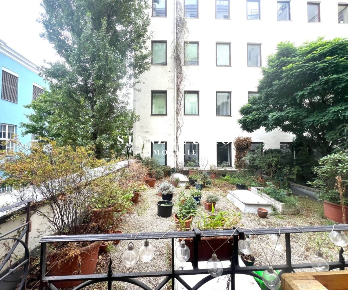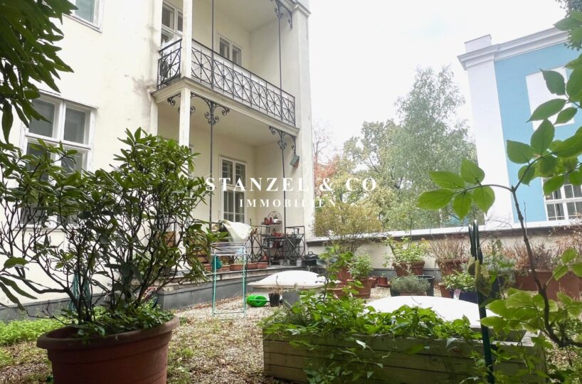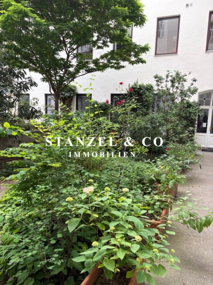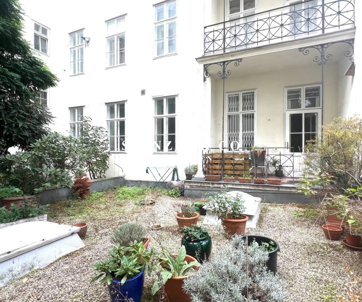 Von der 16m² großzügigen Diele gelangt man in das 29m² große, südwestseitige Wohnzimmer, das mit einem 21m² großen Zimmer verbunden ist. Die 20m² große, gartenseitige Wohnküche mit Tonnengewölbe ist ausgestattet. Das 25m² große Schlafzimmer orientiert sich nach Südwesten – das zweite 25m² große, innenhofseitige Schlafzimmer verfügt über einen anschließenden ca. 5m² großen gartenseitigen Balkon und hat einen direkten Zugang in den begrünten Innenhof. Das Badezimmer mit Fenster ist 5m² groß und mit einer Dusche, einem Doppelwaschtisch und einem großzügigem Spiegel versehen.