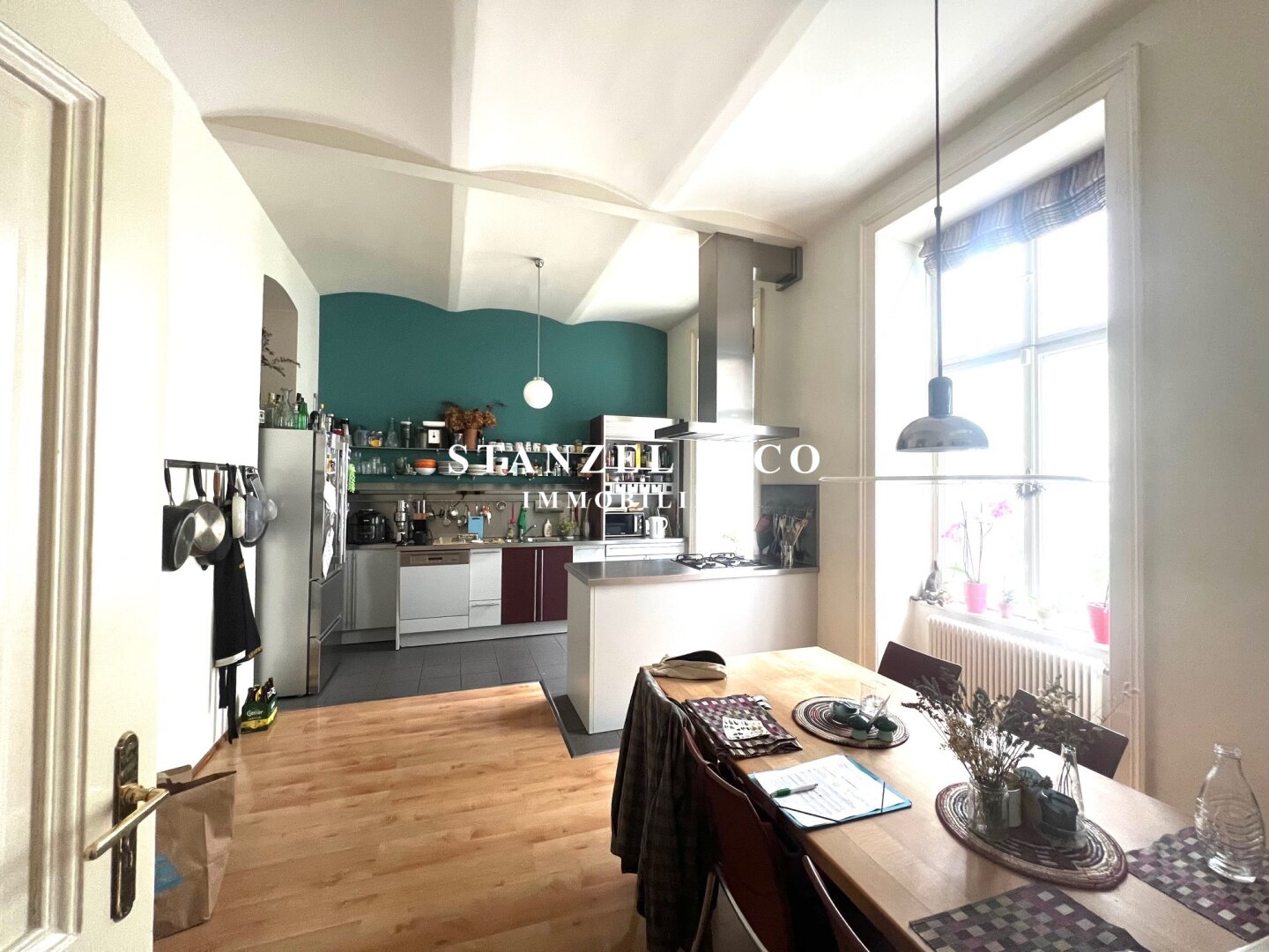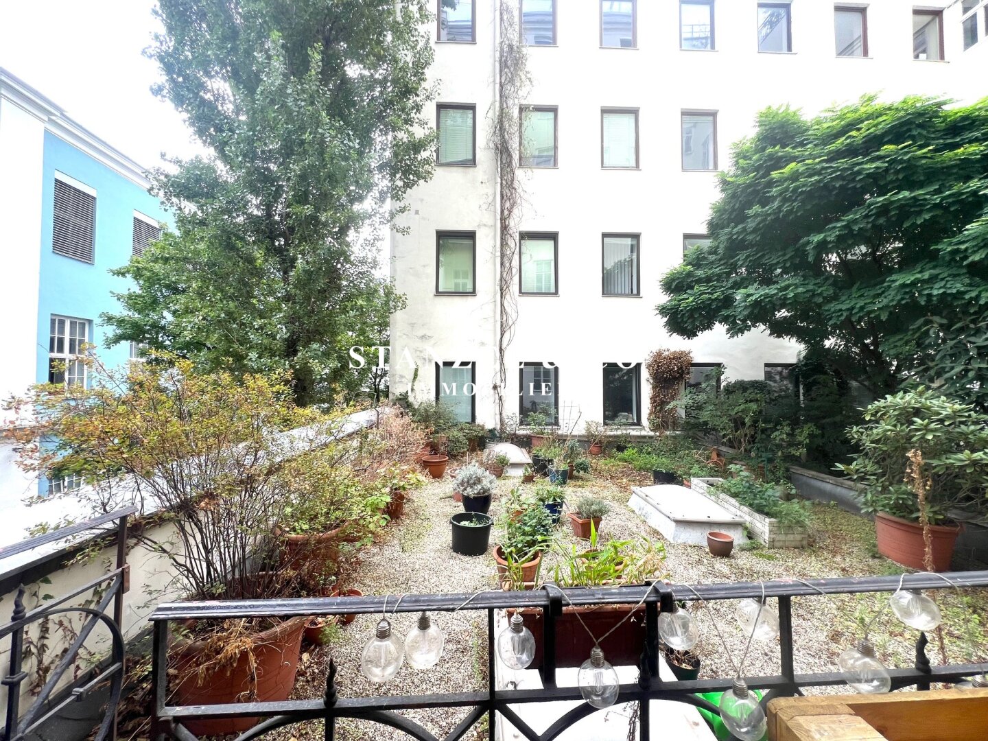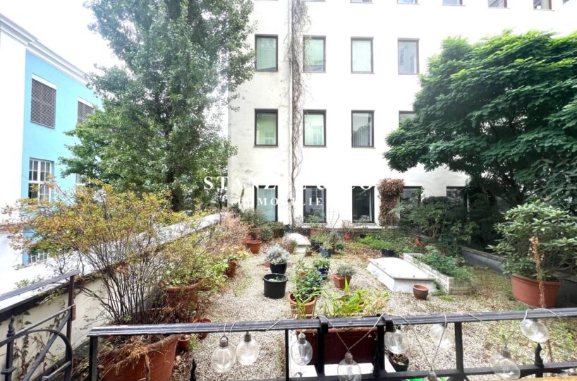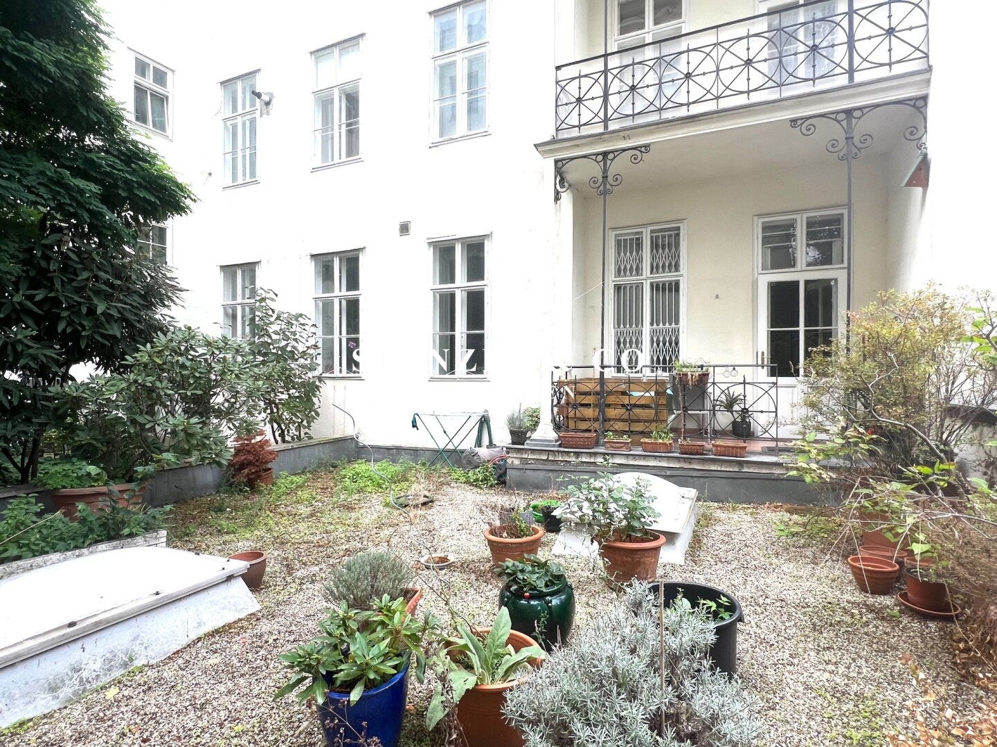 Von der 16m² großzügigen Diele gelangt man in das 29m² große, südwestseitige Wohnzimmer, das mit einem 21m² großen Zimmer verbunden ist. Die 20m² große, gartenseitige Wohnküche mit Tonnengewölbe ist ausgestattet. Das 25m² große Schlafzimmer orientiert sich nach Südwesten – das zweite 25m² große, innenhofseitige Schlafzimmer verfügt über einen anschließenden ca. 5m² großen gartenseitigen Balkon und hat einen direkten Zugang in den begrünten Innenhof. Das Badezimmer mit Fenster ist 5m² groß und mit einer Dusche, einem Doppelwaschtisch und einem großzügigem Spiegel versehen.