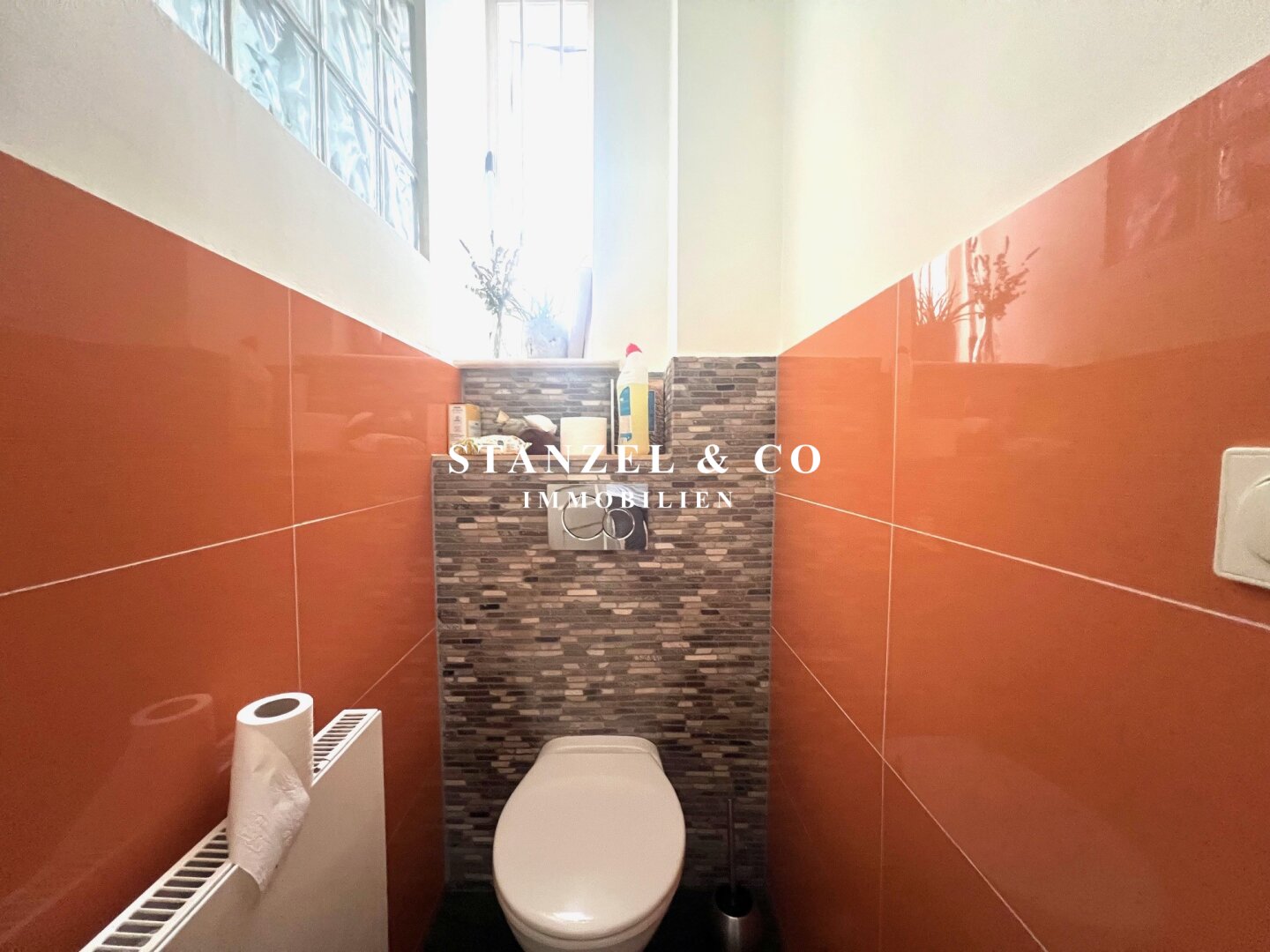Das WC mit kleinem Fenster ist separat und es gibt einen Abstellraum mit kleinem Fenster.