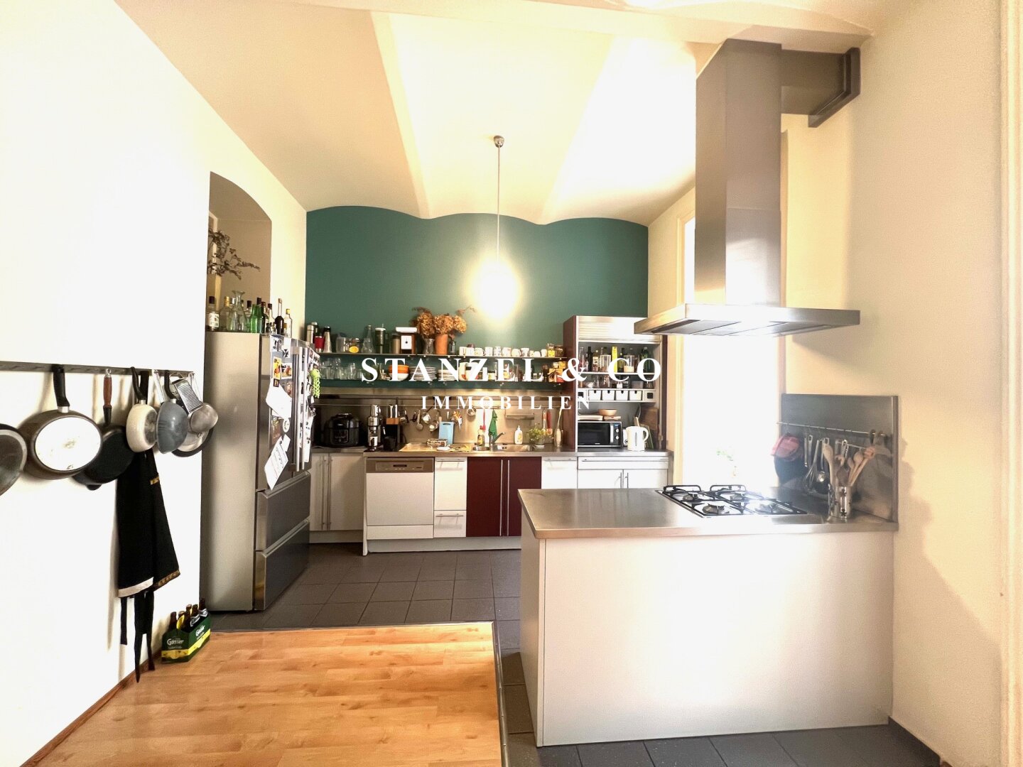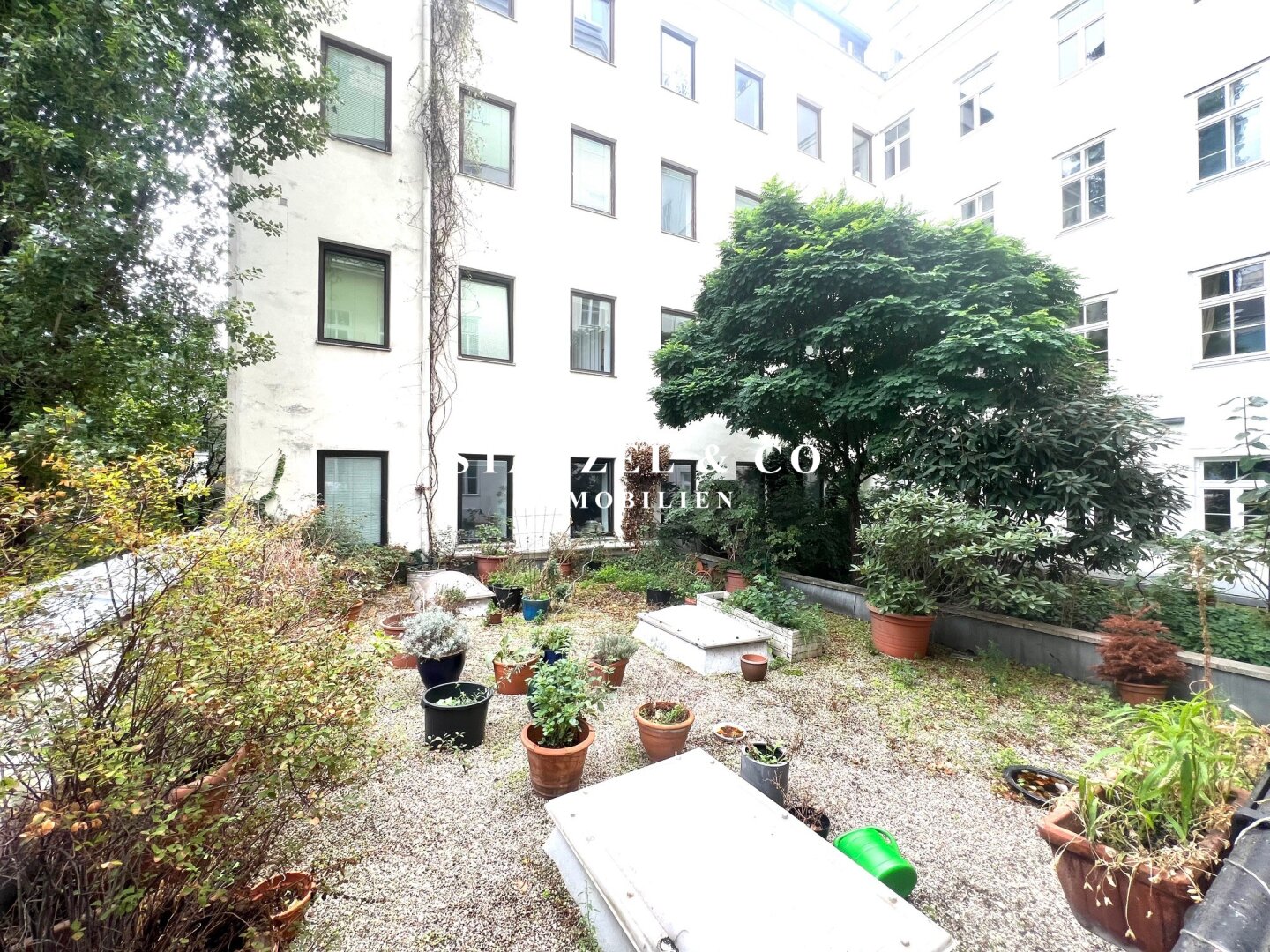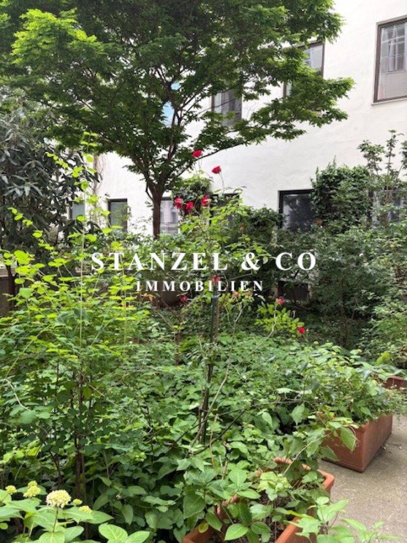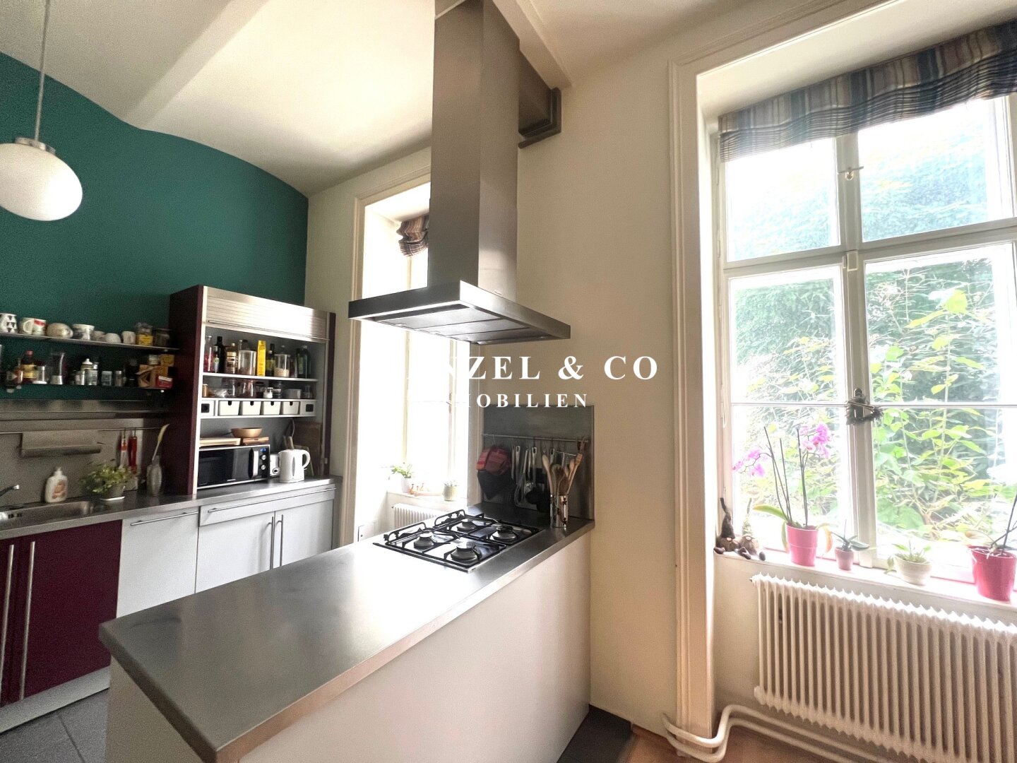 Von der 16m² großzügigen Diele gelangt man in das 29m² große, südwestseitige Wohnzimmer, das mit einem 21m² großen Zimmer verbunden ist. Die 20m² große, gartenseitige Wohnküche ist mit einer Bulthaup-Küche ( Miele-Geräte) und mit einem Tonnengewölbe ausgestattet. Das 25m² große Schlafzimmer orientiert sich nach Südwesten – das zweite 25m² große, innenhofseitige Schlafzimmer verfügt über einen anschließenden ca. 5m² großen gartenseitigen Balkon und hat einen direkten Zugang in den begrünten Innenhof. Das Badezimmer mit Fenster ist 5m² groß und mit einer Dusche, einem Doppelwaschtisch und einem großzügigen Spiegel versehen.