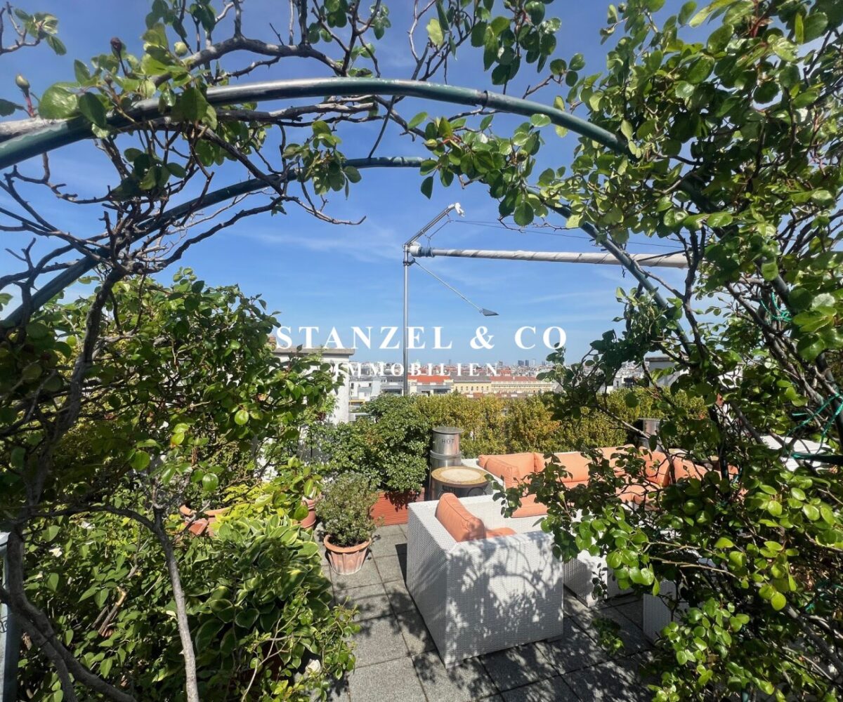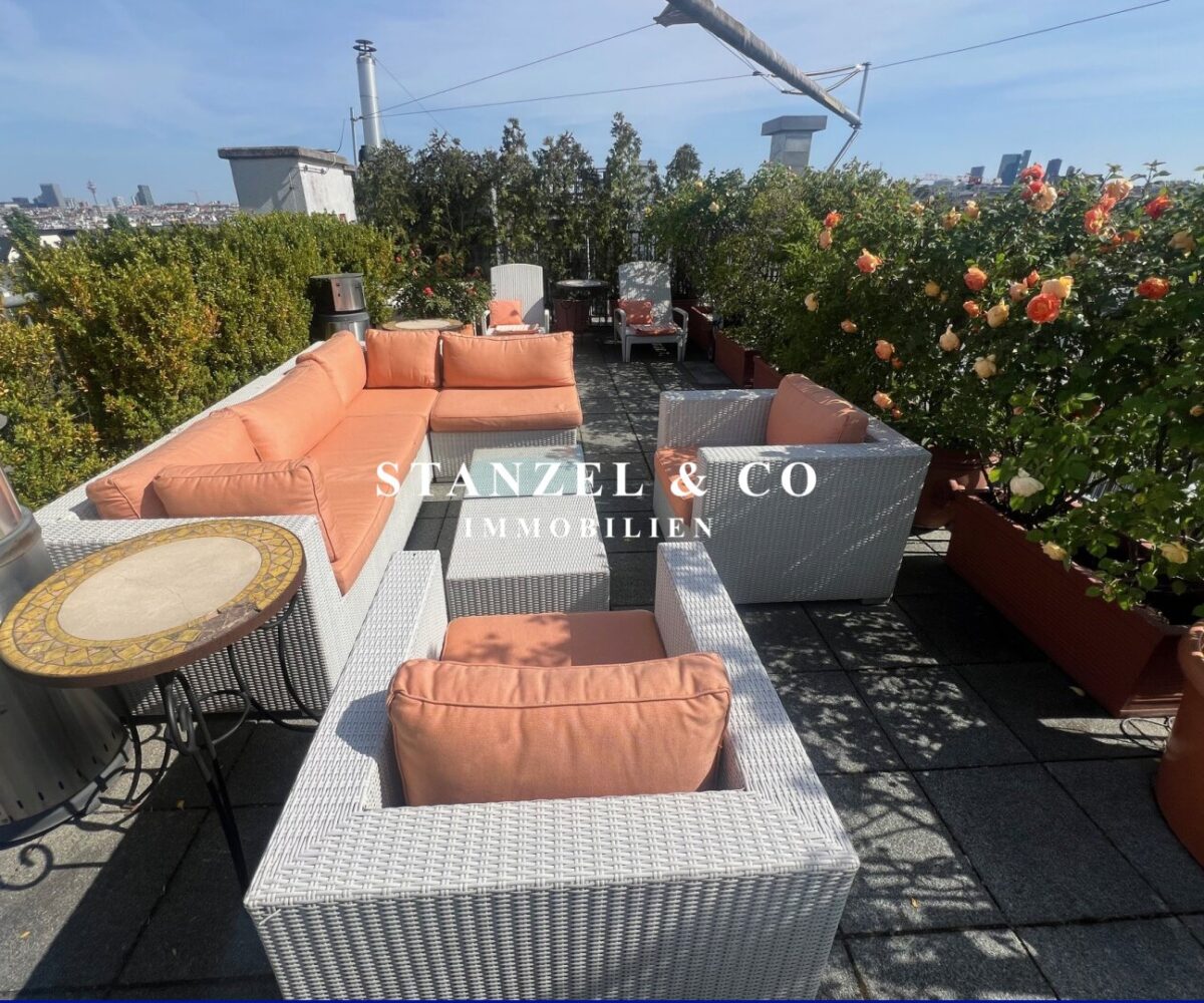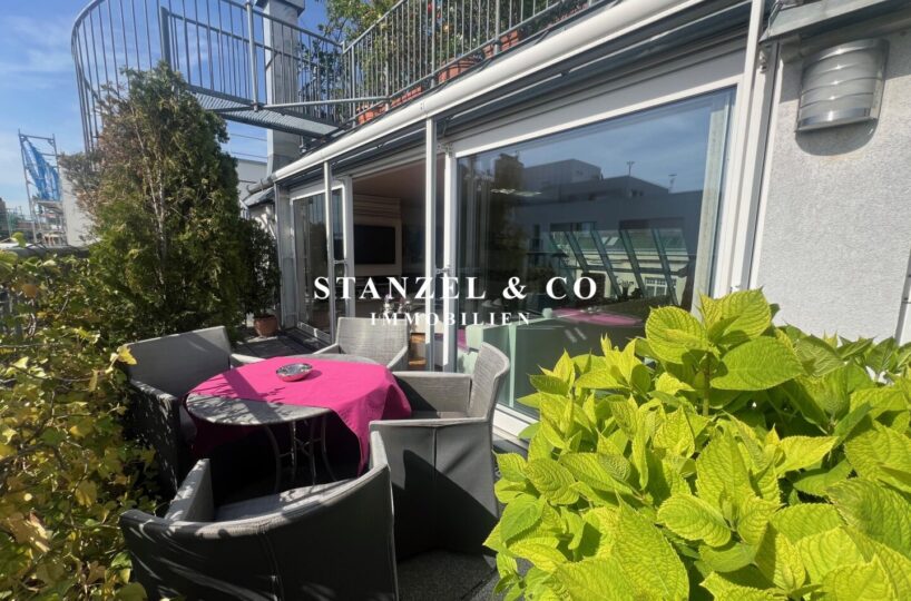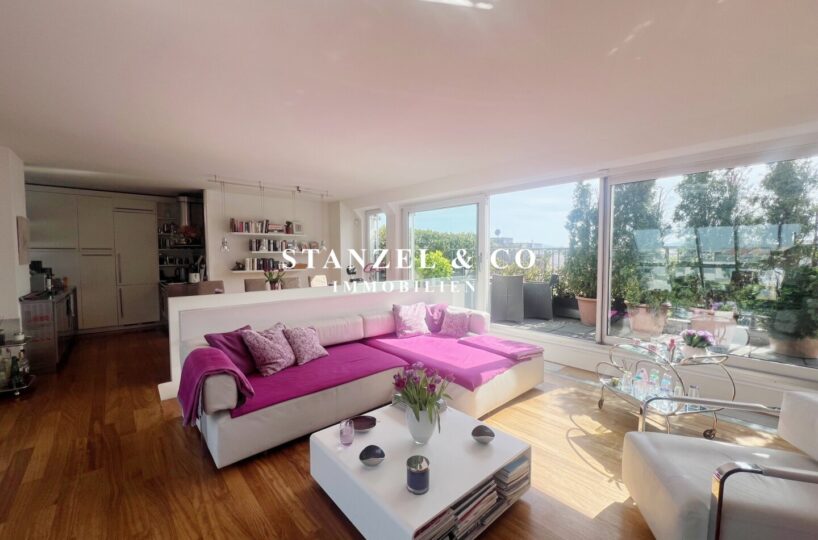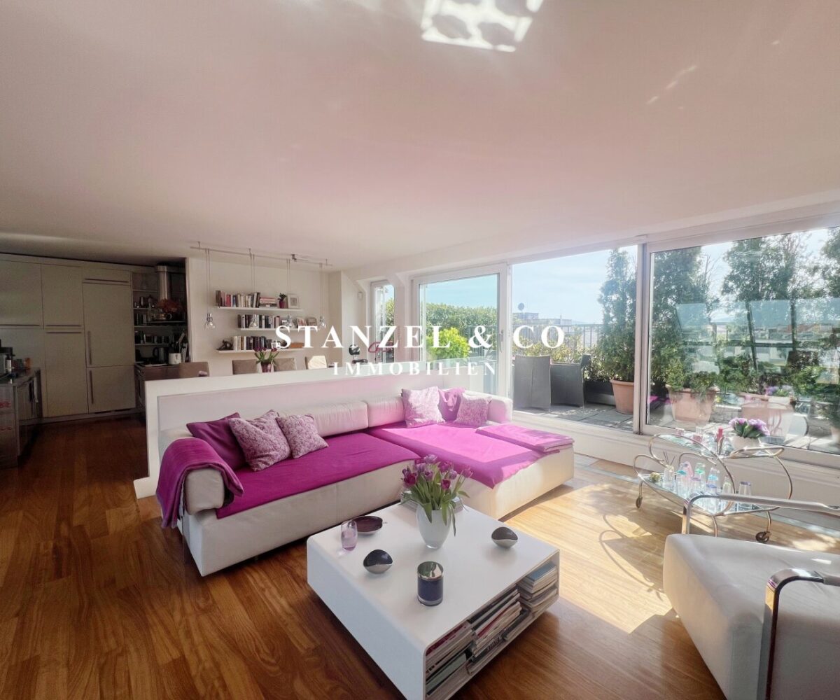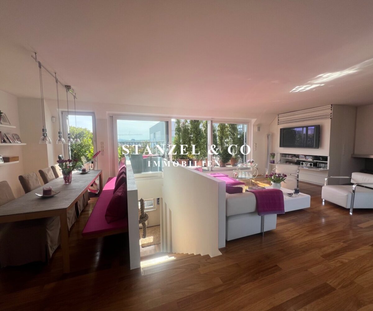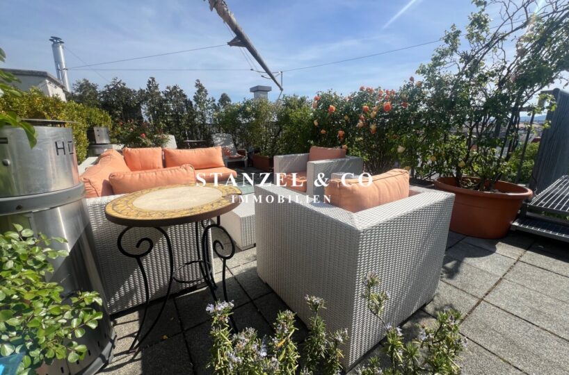 ( Dachterrasse mit Traumblick, hofseitige Südwestterrasse, loftartiger Wohnesssalon, offene Küche, 2 Schlafzimmer, Badezimmer, Abstellraum, WC, Kellerabteil & Garagenstellplatz zu kaufen möglich )