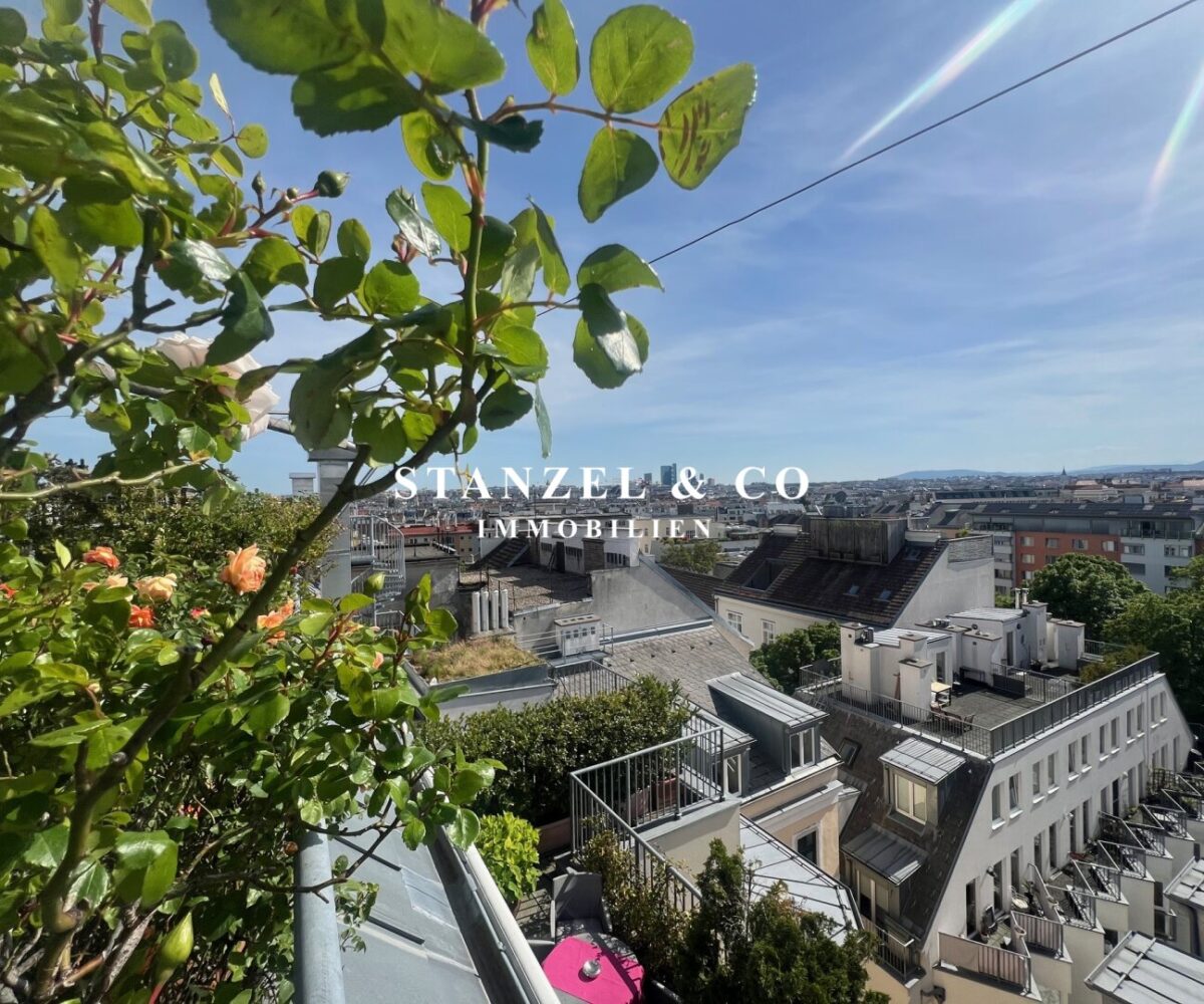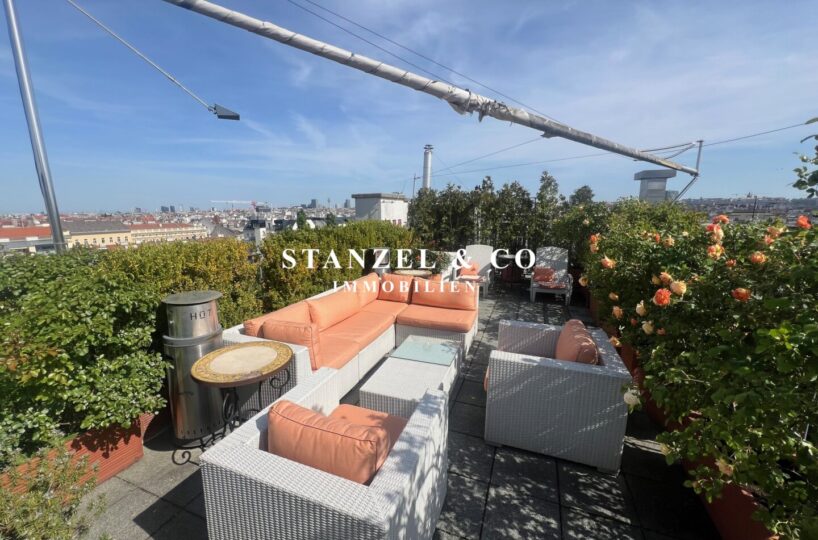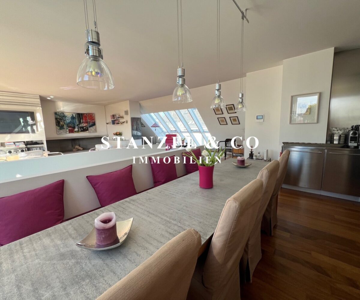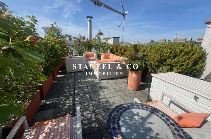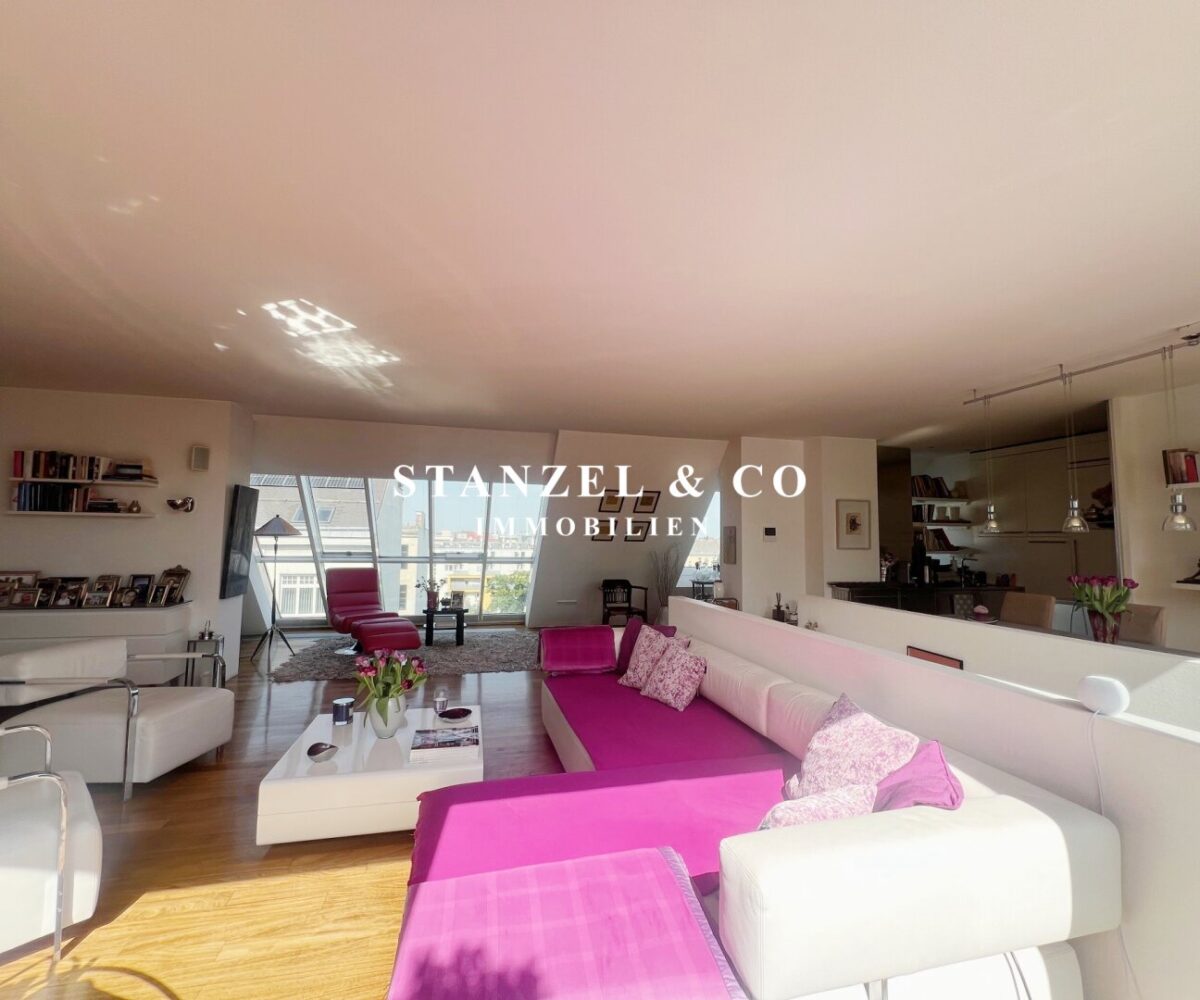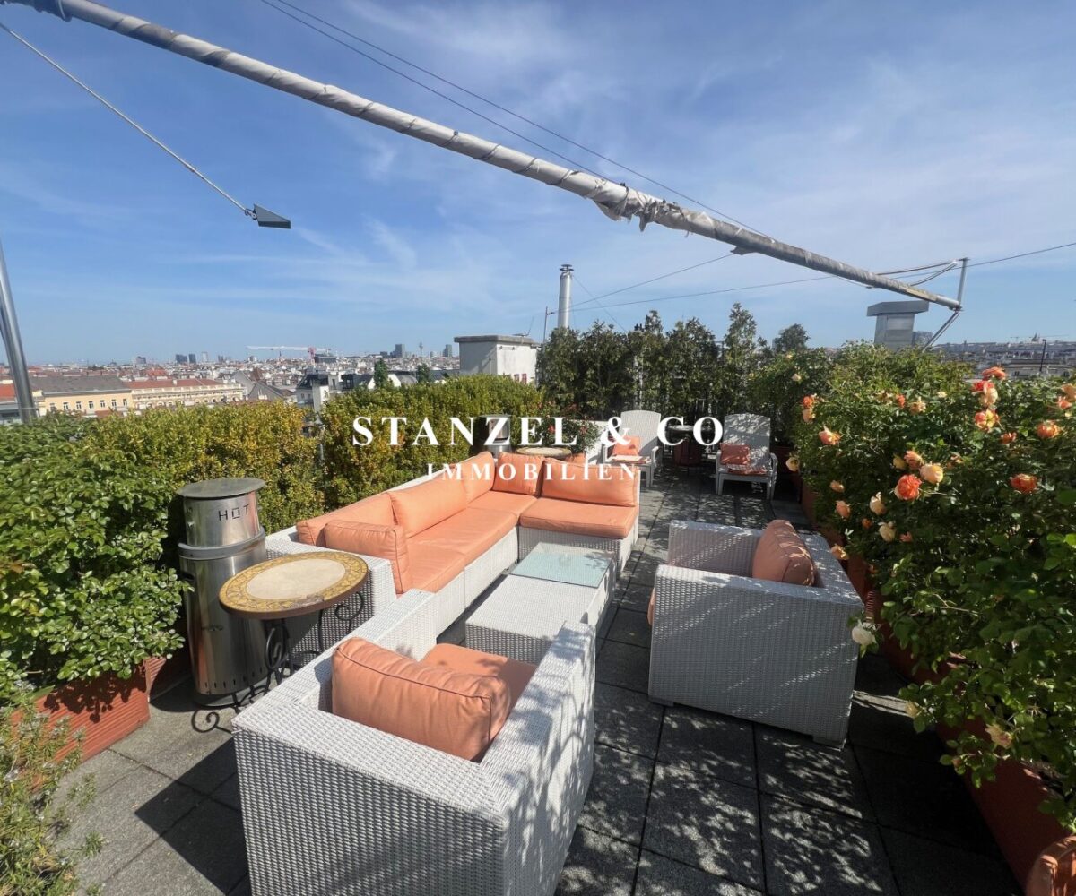 ( Dachterrasse mit Traumblick, hofseitige Südwestterrasse, loftartiger Wohnesssalon, offene Küche, 2 Schlafzimmer, Badezimmer, Abstellraum, WC, Kellerabteil & Garagenstellplatz zu kaufen möglich )