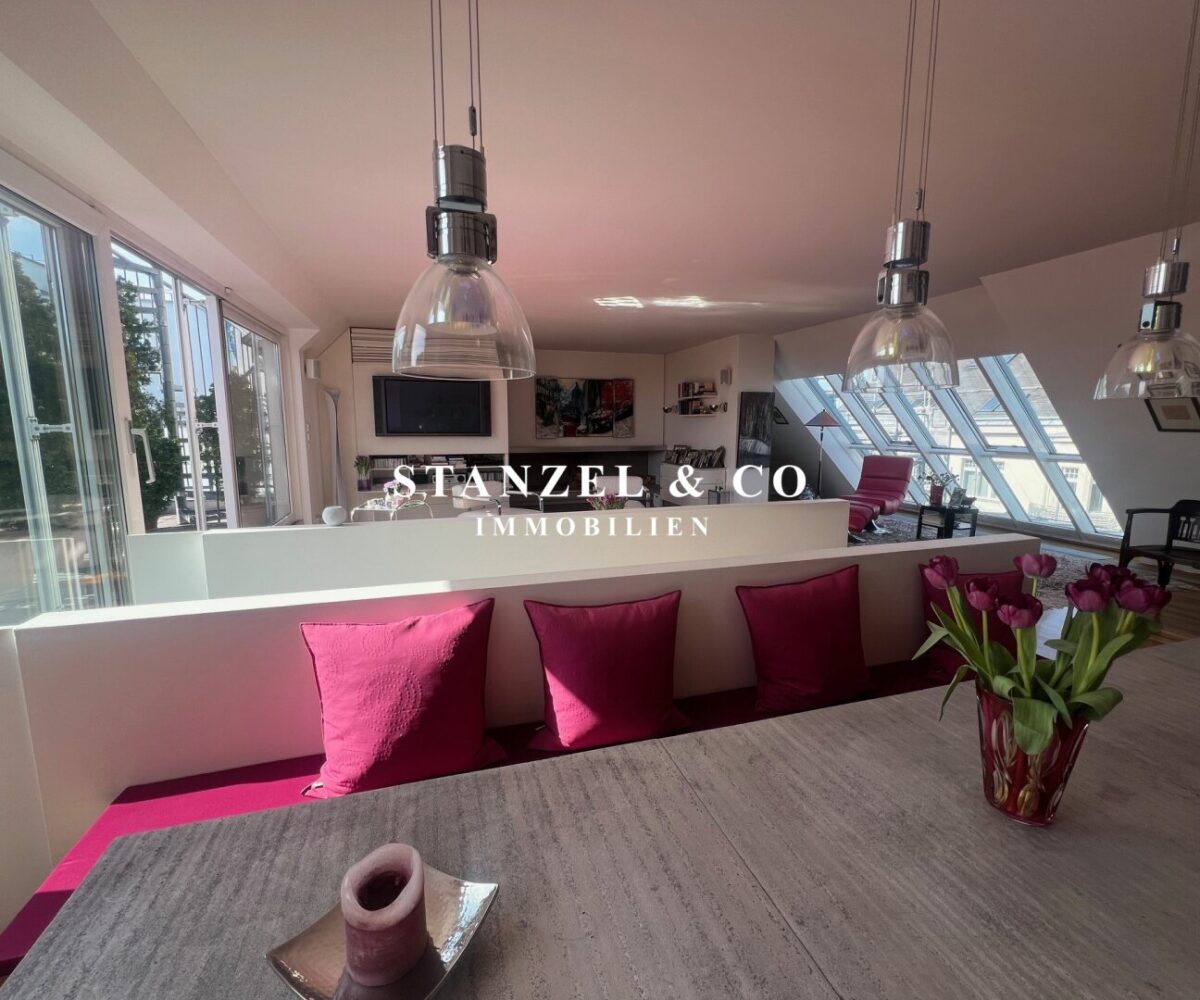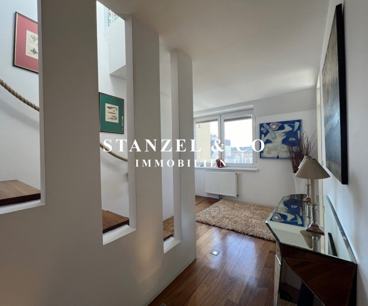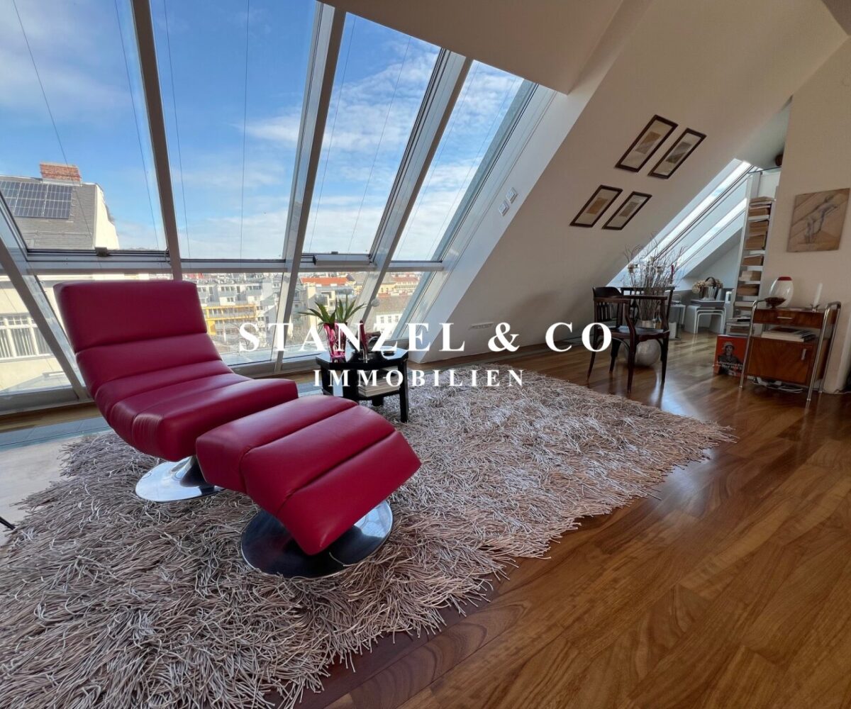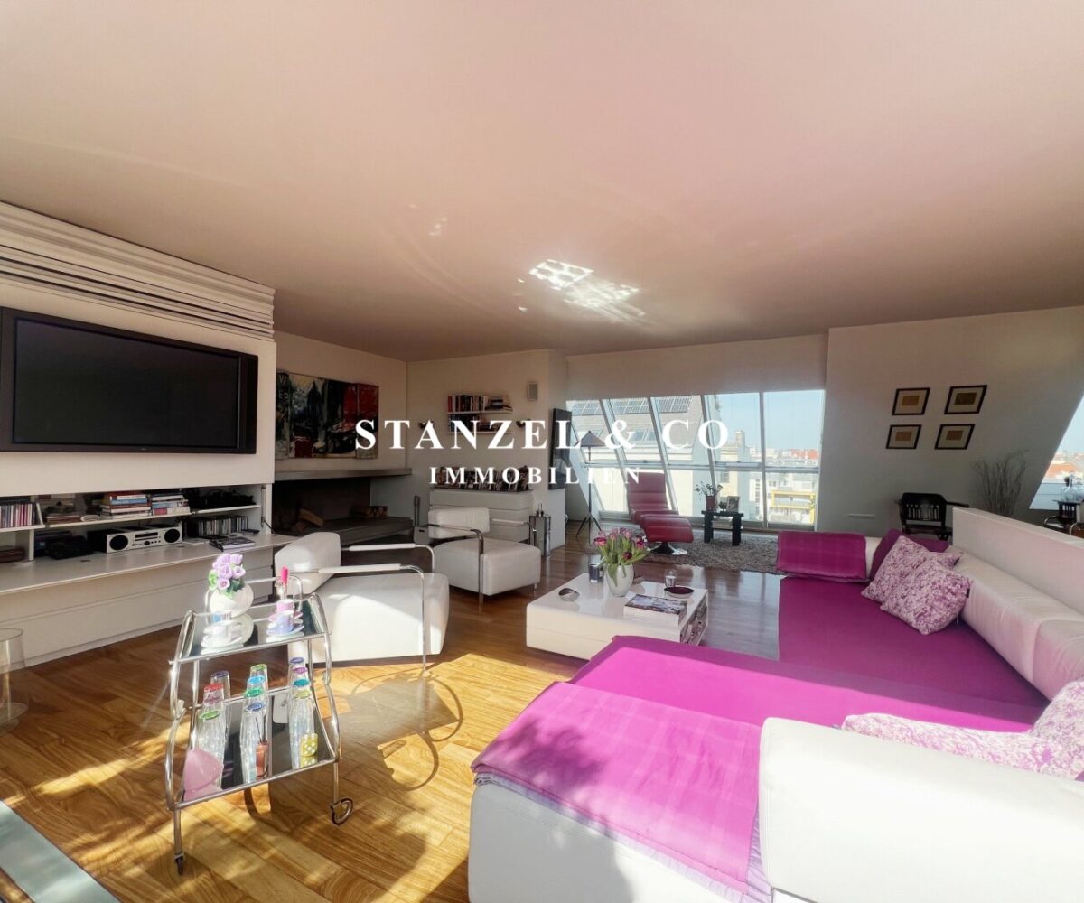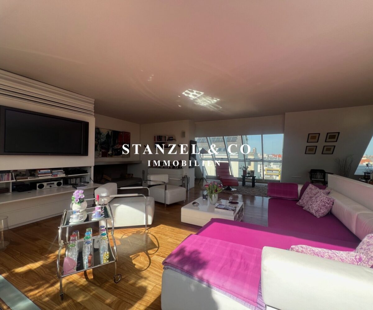 ( Dachterrasse mit Traumblick, hofseitige Südwestterrasse, loftartiger Wohnesssalon, offene Küche, 2 Schlafzimmer, Badezimmer, Abstellraum, WC, Kellerabteil & Garagenstellplatz zu kaufen möglich )