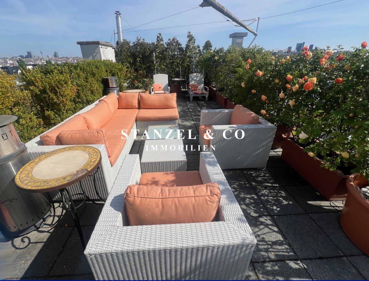 ( Dachterrasse mit Traumblick, hofseitige Südwestterrasse, loftartiger Wohnesssalon, offene Küche, 2 Schlafzimmer, Badezimmer, Abstellraum, WC, Kellerabteil & Garagenstellplatz zu kaufen möglich )