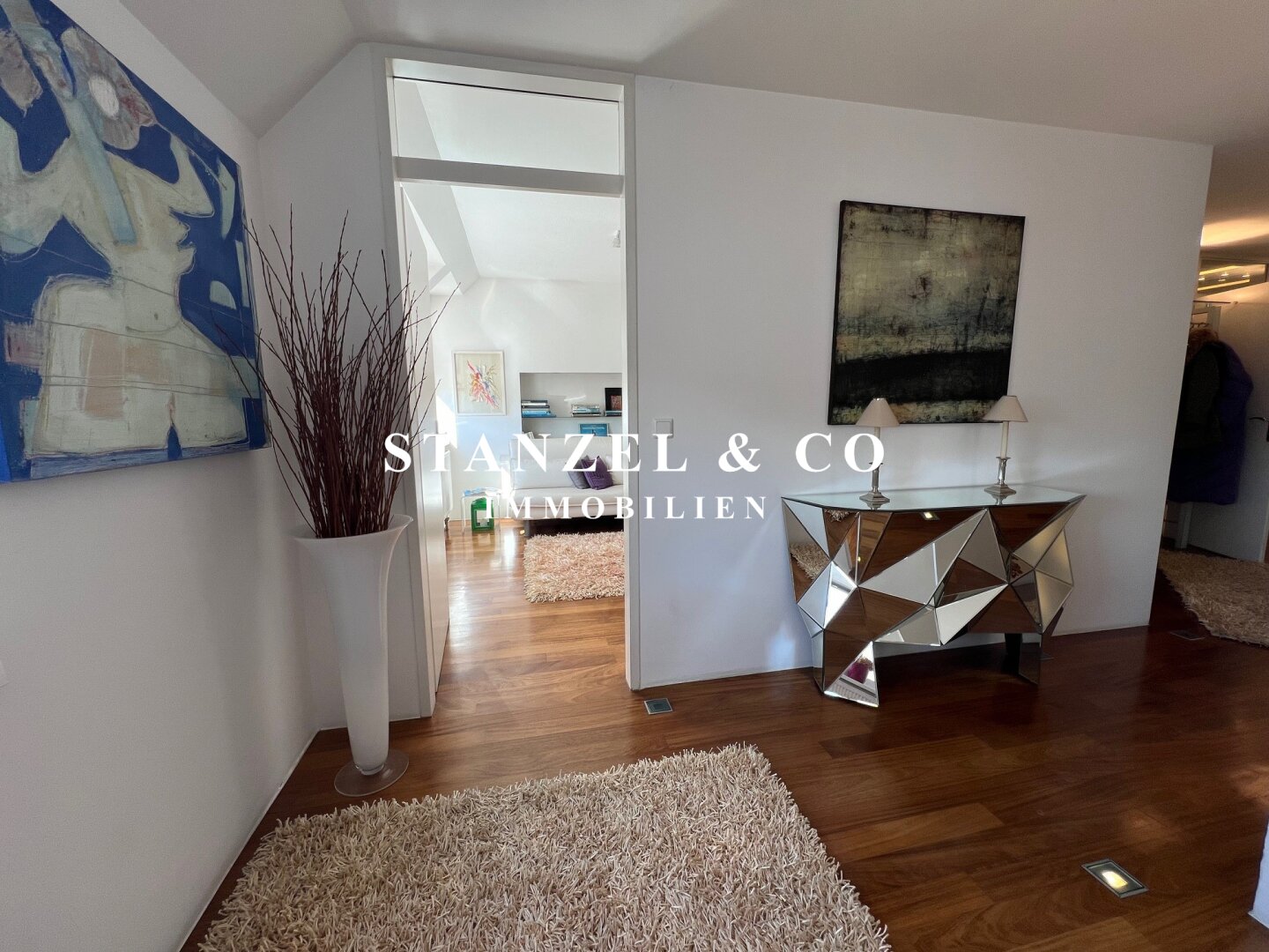 Die Wohnung wurde mit hochwertigen Tischler gefertigten Einbauten versehen und im Eingangsbereich der Liegenschaft wurden Lichtquellen in den Parkettboden eingearbeitet, welche für ein schönes Ambiente und eine großartige Stimmung sorgen.