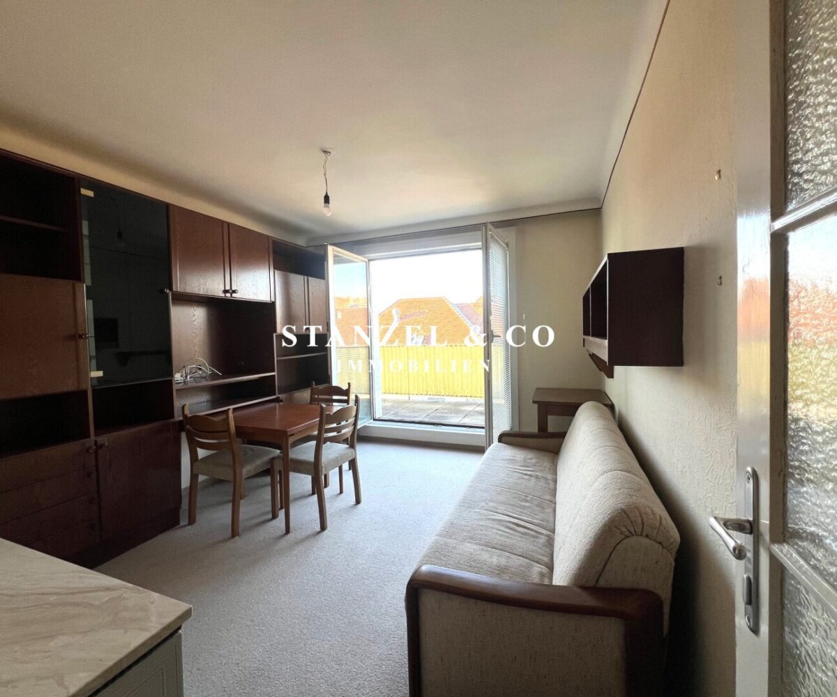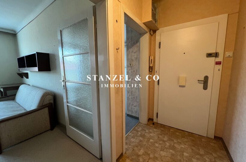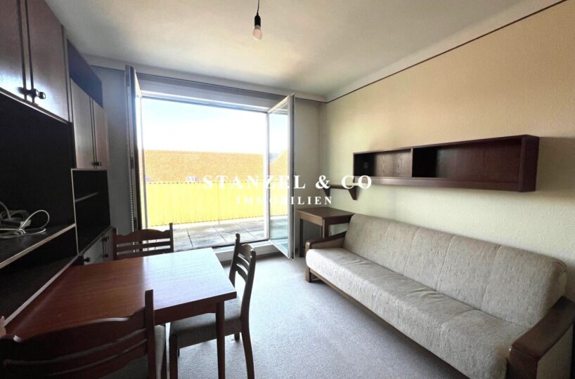 Vom ca. 6m² großen Vorzimmer gelangt man in das nordwestseitige ca. 13m² große Wohnzimmer mit anschließender ca.11m² großen, nordwestseitigen Terrasse.