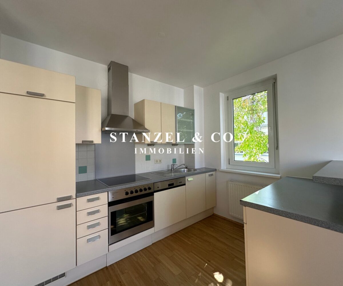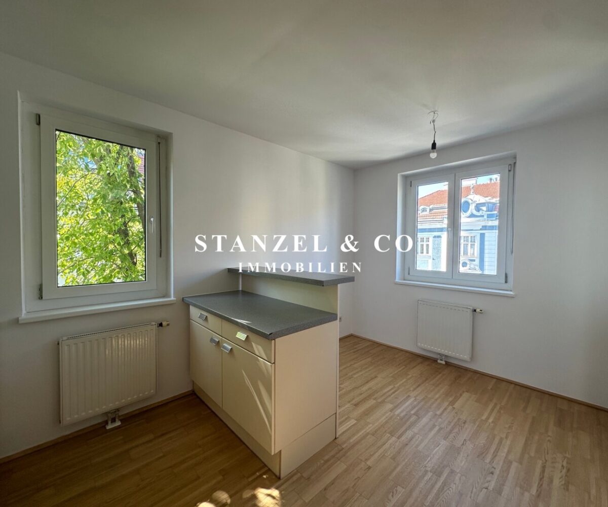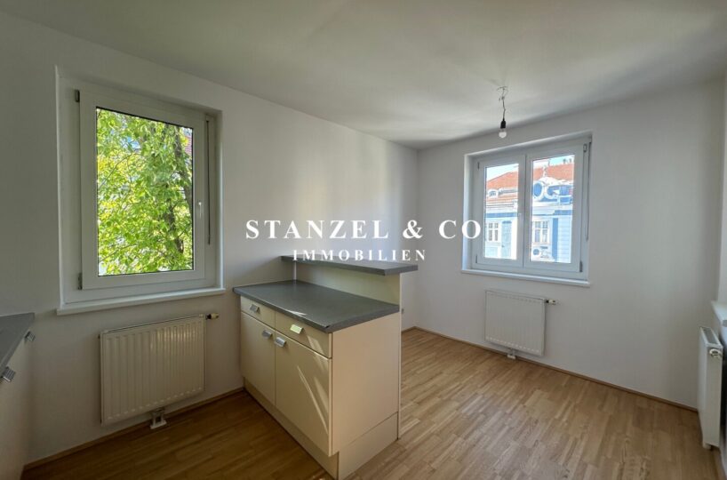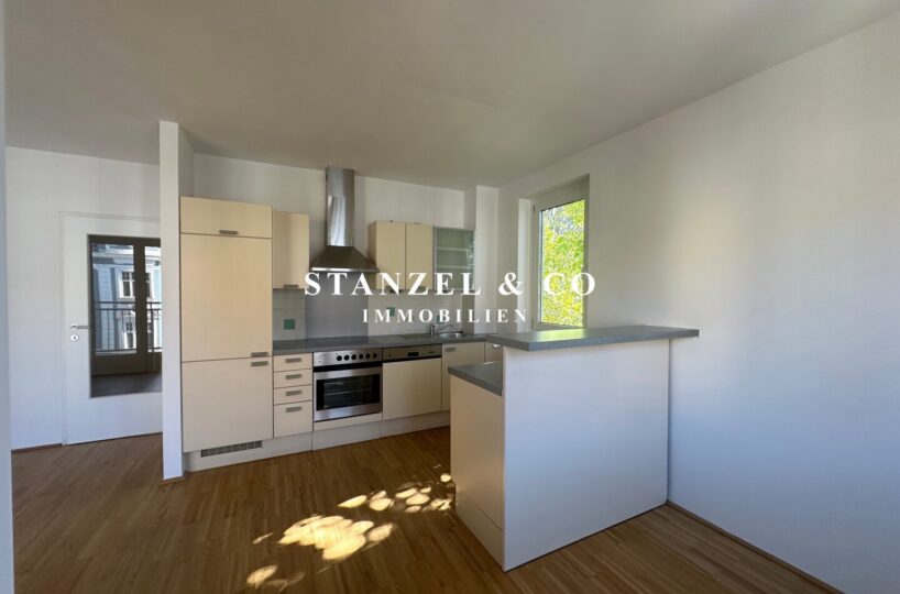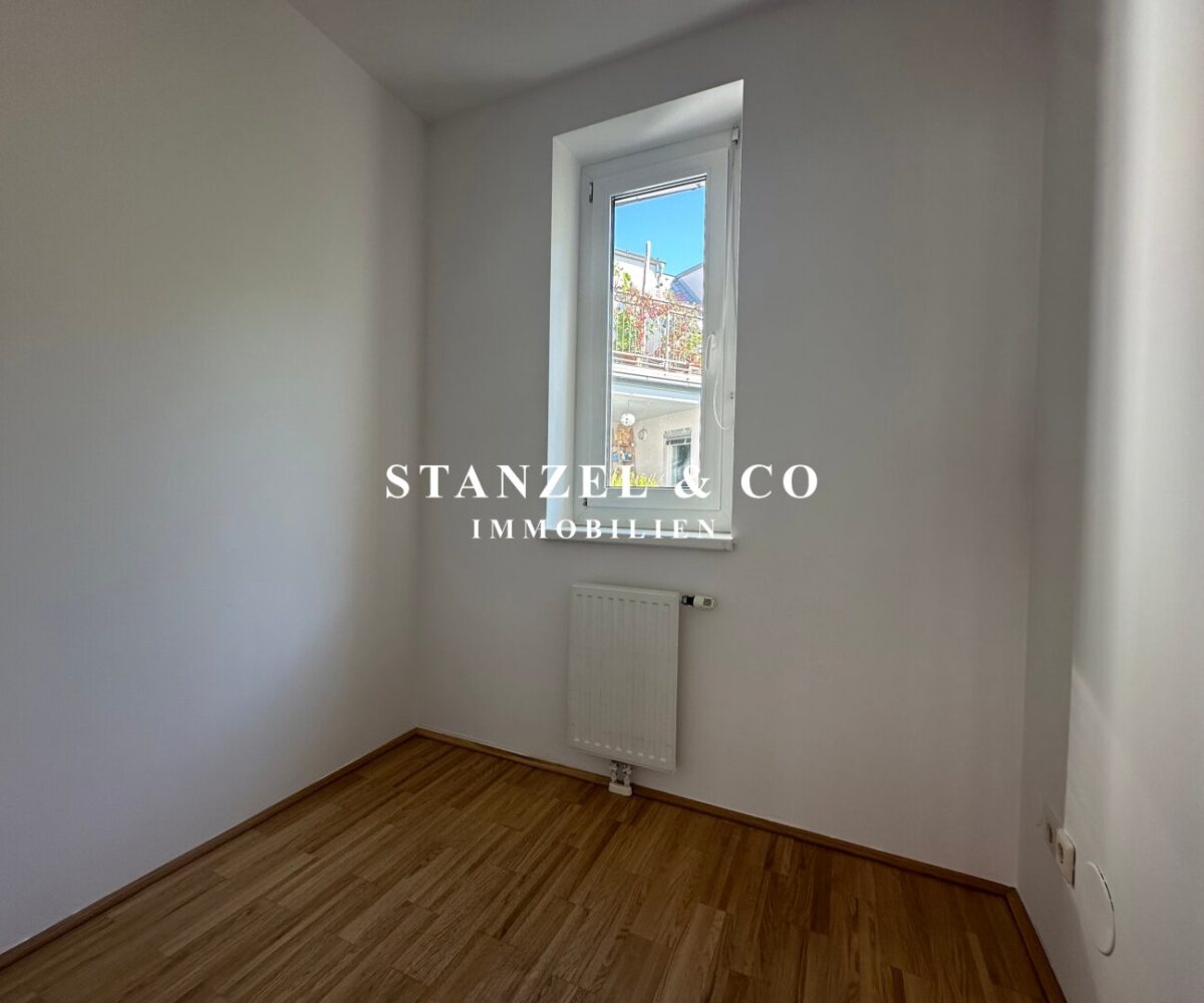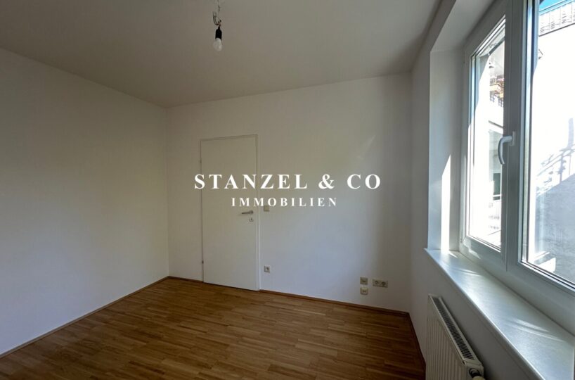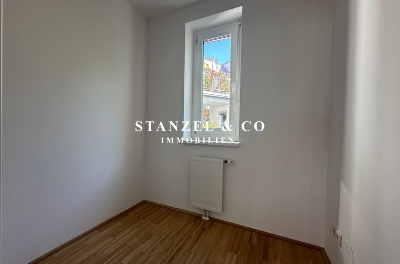 Über einen schönen Pawlatschengang gelangt man zum Eingang der Liegenschaft. Vom 6m² großen Vorraum gehen zentral die beiden Räume ab. Der 24m² große Büroraum mit offener Küche ist südwestseitig orientiert und anschließend befindet sich der 6m² große Westbalkon. Die moderne Küche ist mit einem Kühlschrank + Gefrierfach, Dunstabzug, Backrohr, Ceranfeld und Geschirrspüler ausgestattet. Der 10m² große Raum ist ost- & gartenseitig. Das Badezimmer ist mit einer Wanne, einem fliesenbündigen Spiegel + Beleuchtung, einem Waschbecken, Handtuchtrockner, Fenster, elektrischer Entlüftung und Waschmaschinenanschluss versehen. Der 3,50m² große Abstellraum verfügt über ein Fenster. Des Weiteren gibt es ein separates WC mit elektrischer Entlüftung.