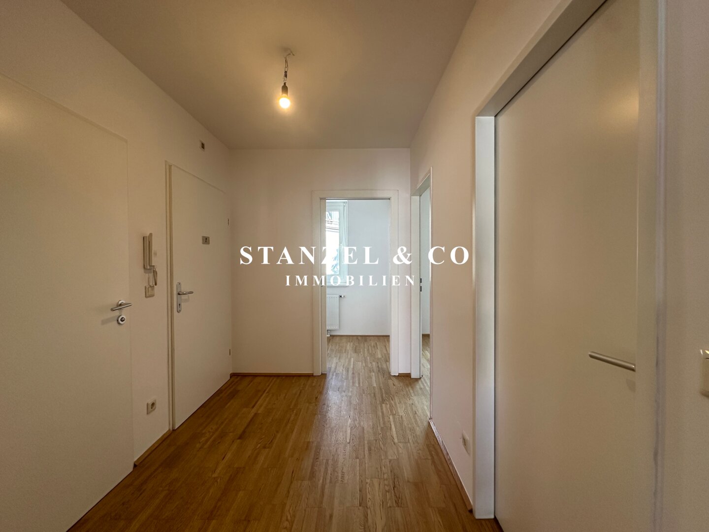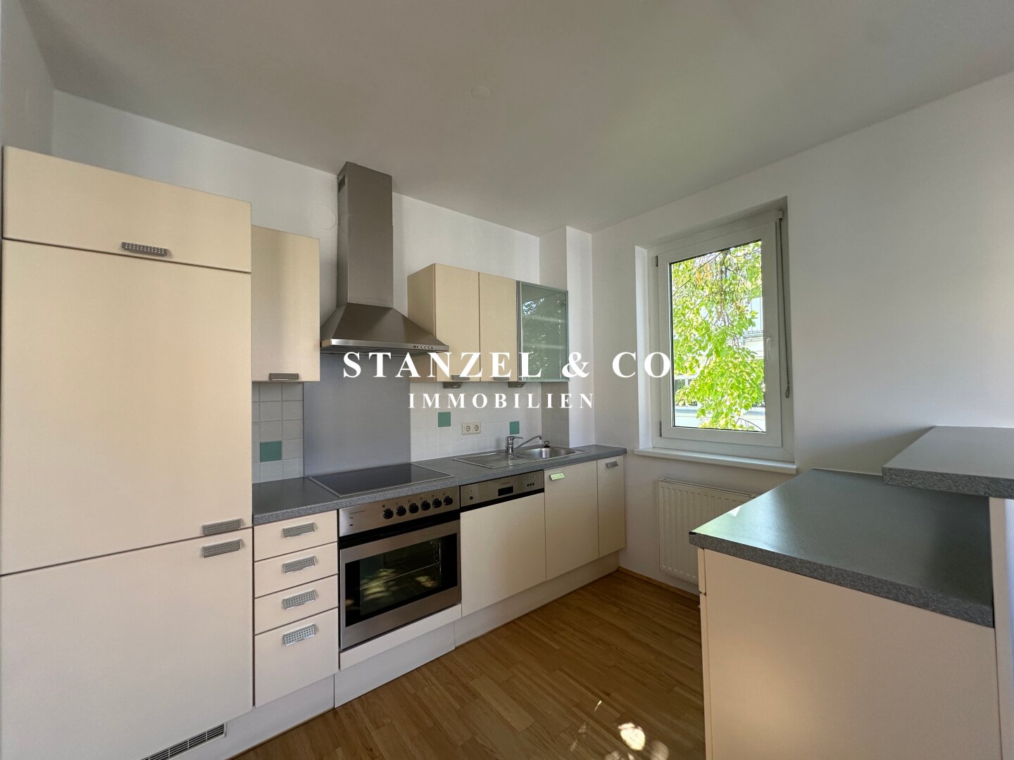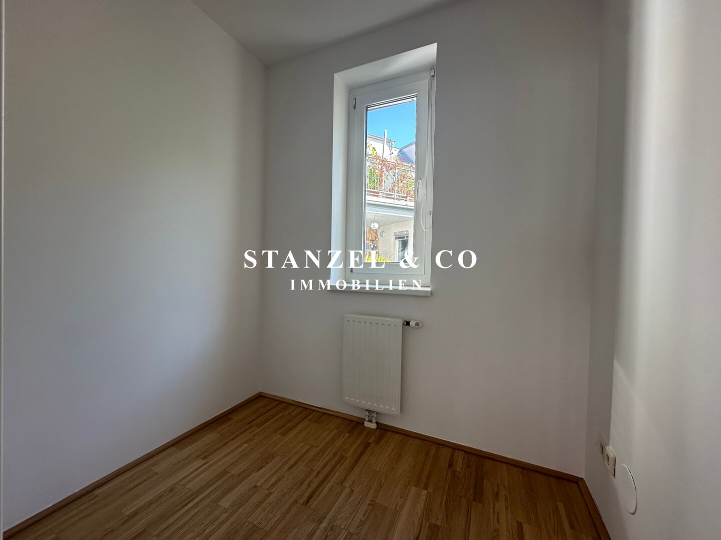 Über einen schönen Pawlatschengang gelangt man zum Eingang der Liegenschaft. Vom 6m² großen Vorraum gehen zentral die beiden Räume ab. Der 24m² große Büroraum mit offener Küche ist südwestseitig orientiert und anschließend befindet sich der 6m² große Westbalkon. Die moderne Küche ist mit einem Kühlschrank + Gefrierfach, Dunstabzug, Backrohr, Ceranfeld und Geschirrspüler ausgestattet. Der 10m² große Raum ist ost- & gartenseitig. Das Badezimmer ist mit einer Wanne, einem fliesenbündigen Spiegel + Beleuchtung, einem Waschbecken, Handtuchtrockner, Fenster, elektrischer Entlüftung und Waschmaschinenanschluss versehen. Der 3,50m² große Abstellraum verfügt über ein Fenster. Des Weiteren gibt es ein separates WC mit elektrischer Entlüftung.