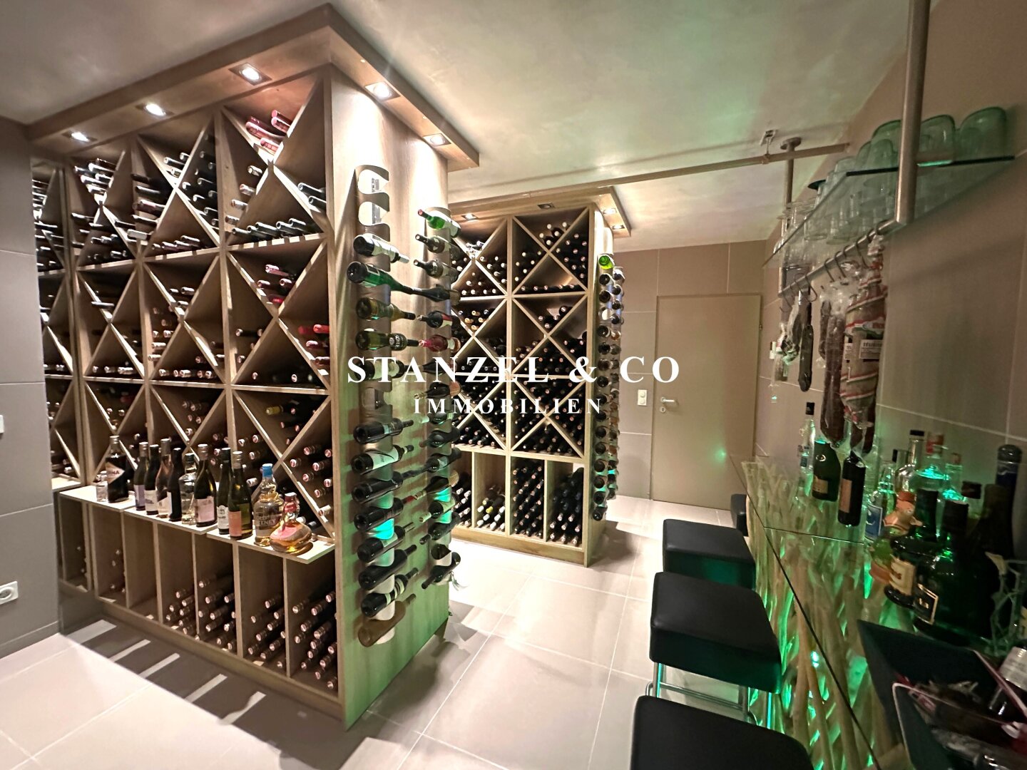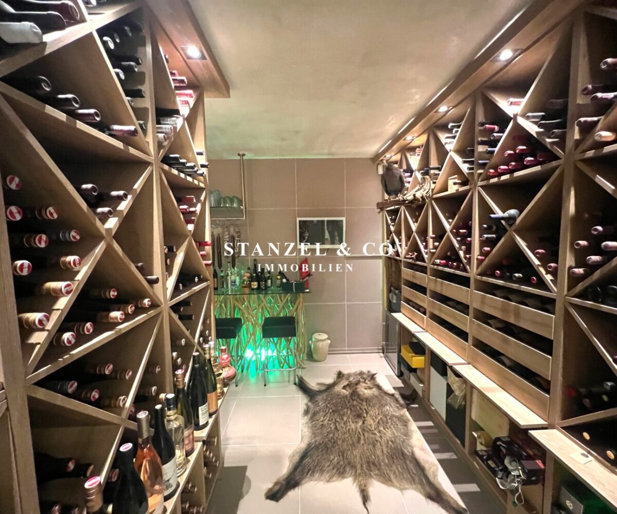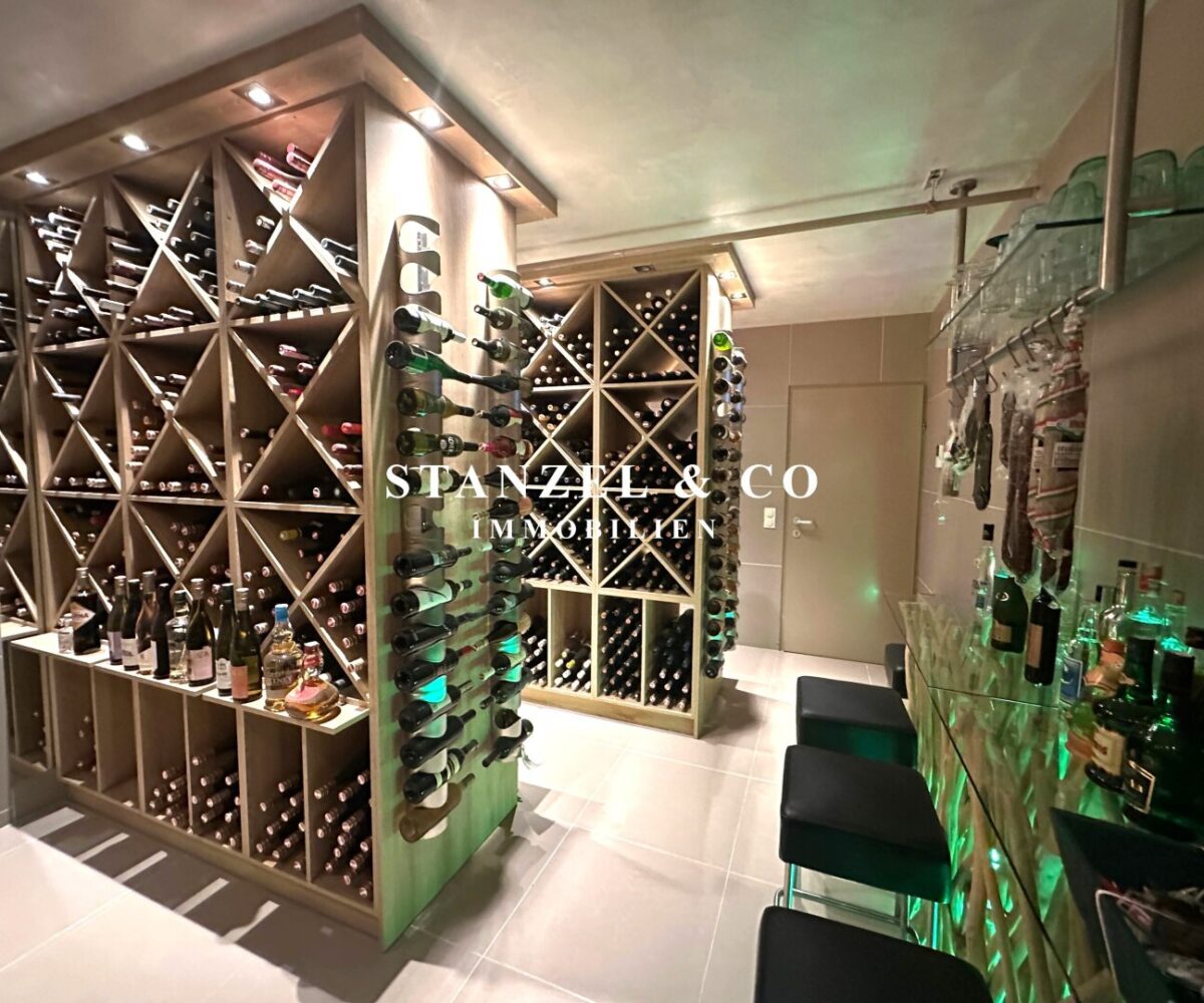 Der Weinkeller ist 20m² groß – anschließend befindet sich der Wirtschaftsraum mit Waschmaschine und Haustechnik, sowie ein WC. Es gibt einen direkten Zugang zum Garten als auch zur Garage.