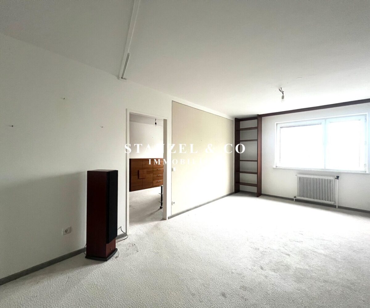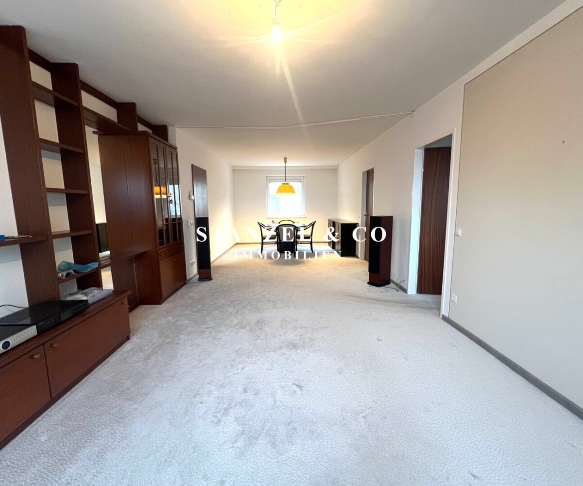 Vom 8m² großen Vorzimmer – mit neuwertigen Einbauten – gelangt man in das sonnige, sowohl ost- als auch westseitige 35m² große Wohnesszimmer.
