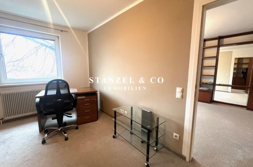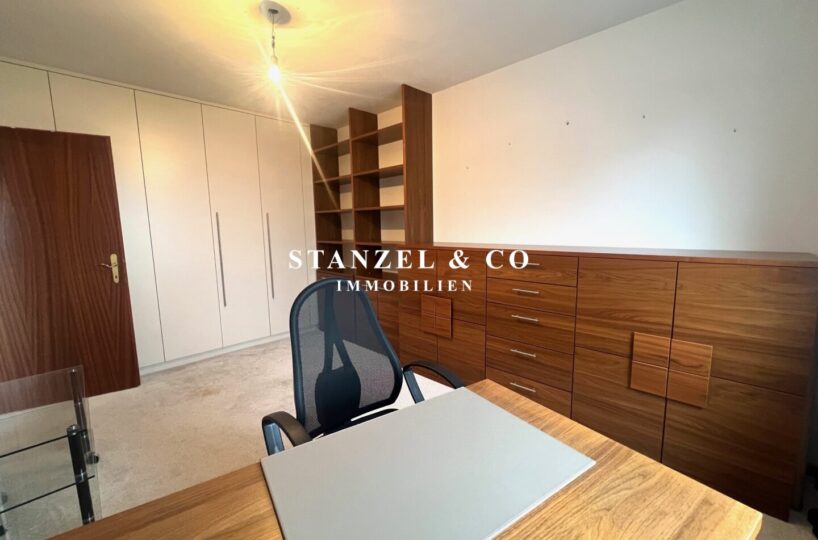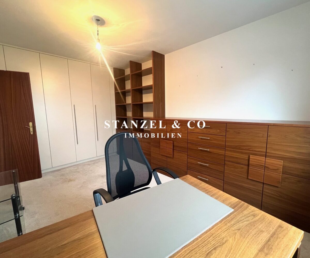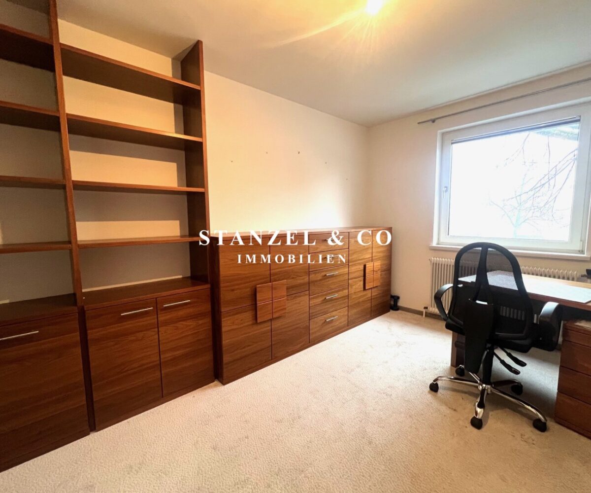 Das 14m² große, innenhofseitige Schlafzimmer ist westseitig & ruhig, das 15m² große Schlafzimmer/Arbeitszimmer ist ostseitig orientiert und hat einen neuen Vollholzverbau.