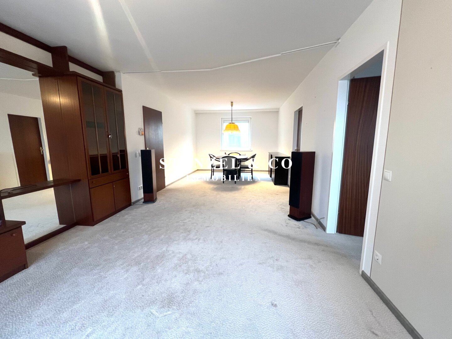 Vom 8m² großen Vorzimmer – mit neuwertigen Einbauten – gelangt man in das sonnige, sowohl ost- als auch westseitige 35m² große Wohnesszimmer.