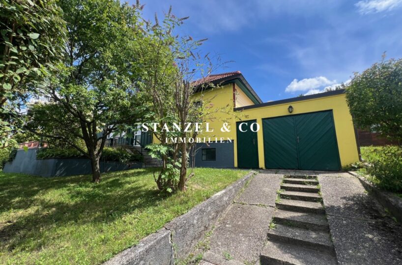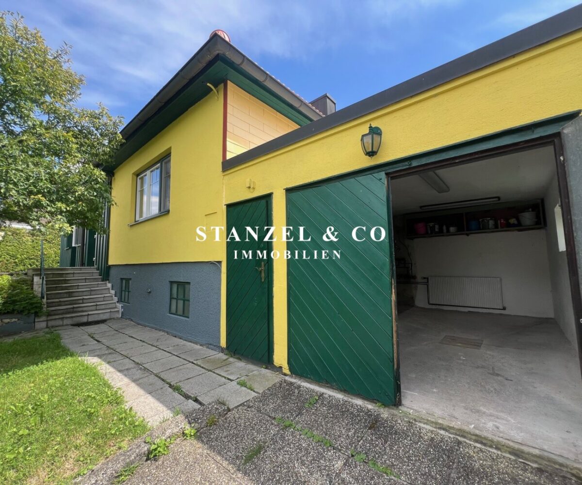 ( Vorzimmer, Terrasse, Wohnesszimmer, Küche, 3 Schlafzimmer, Badezimmer, WC und kleine Garage, teilunterkellert )