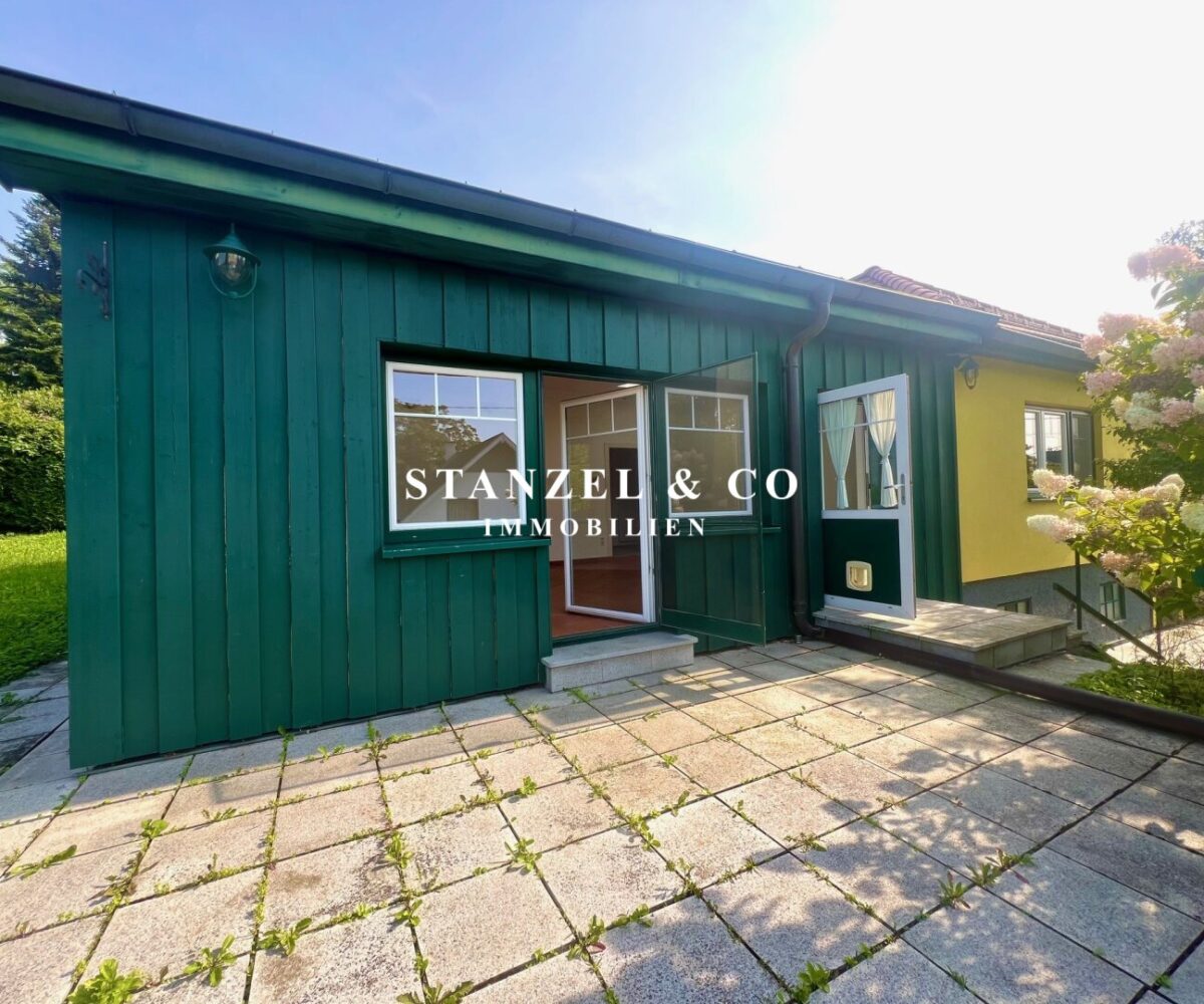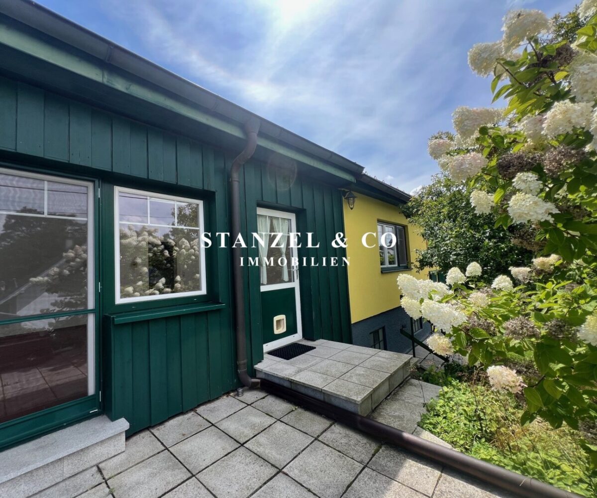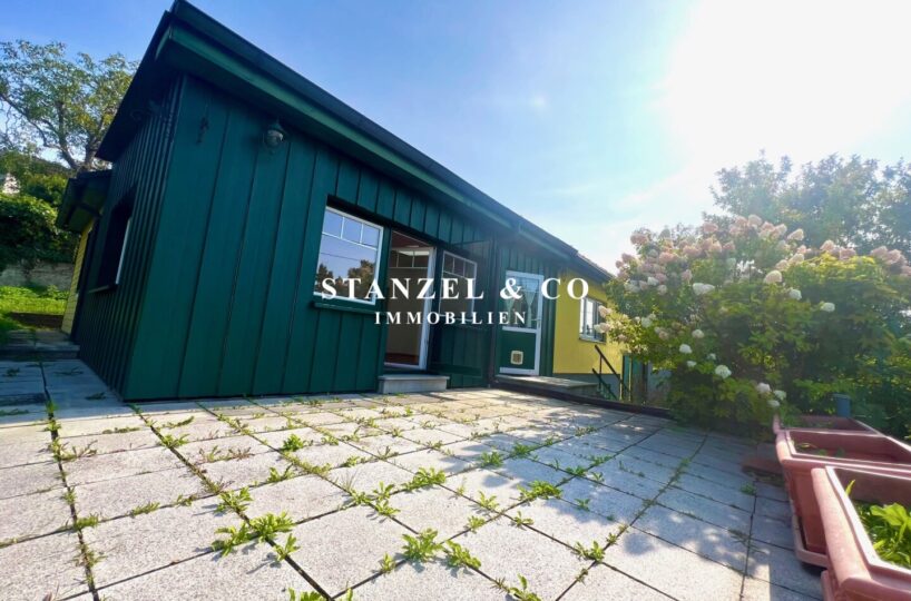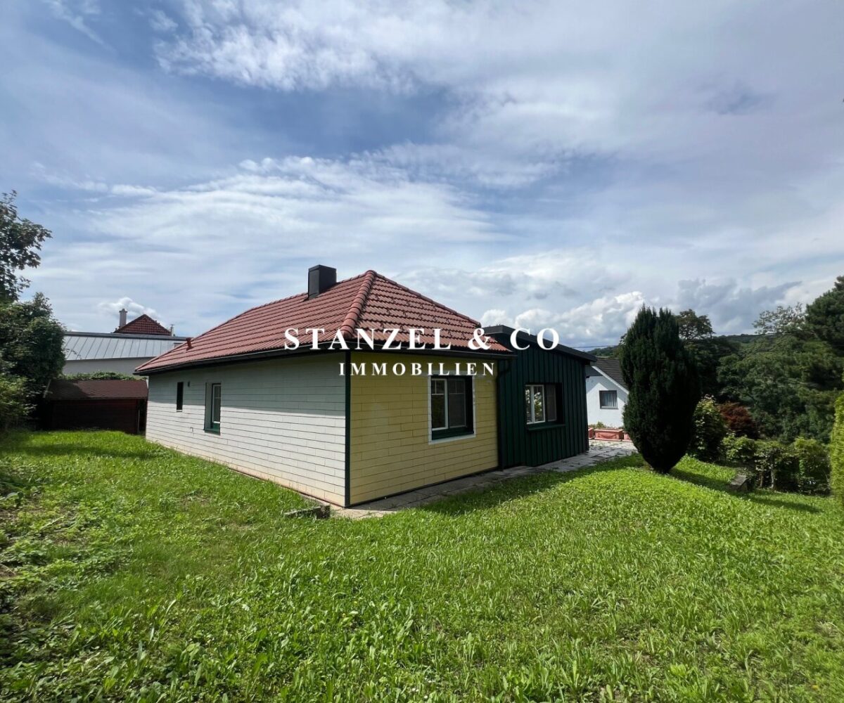 Sonniger 95m² großer Bungalow mit 31m² großer Terrasse & ca. 490m² großem Garten ( teilunterkellert ),