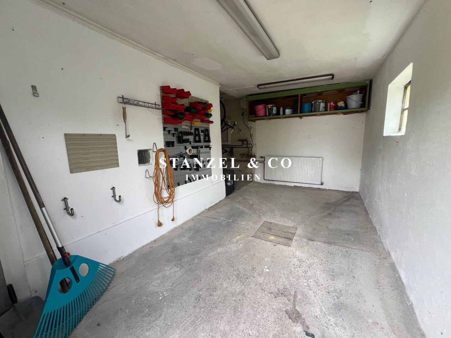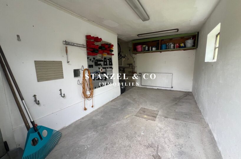 Die Garage ist 15m² groß ( durch die dzt. steile Auffahrt nicht zu nutzen )